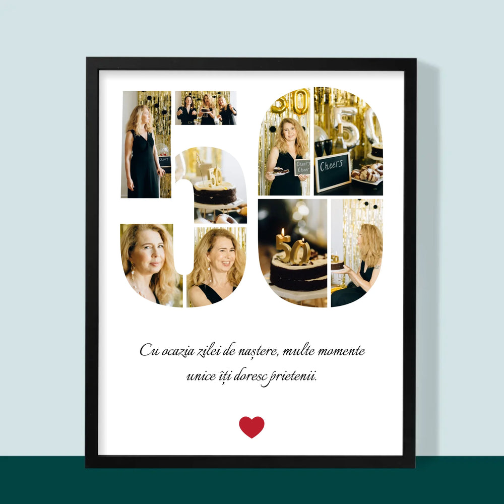 Formă Din Fotografii: A 50 Zi De Naștere - Imprimare cu ramă 30x40 - verticală