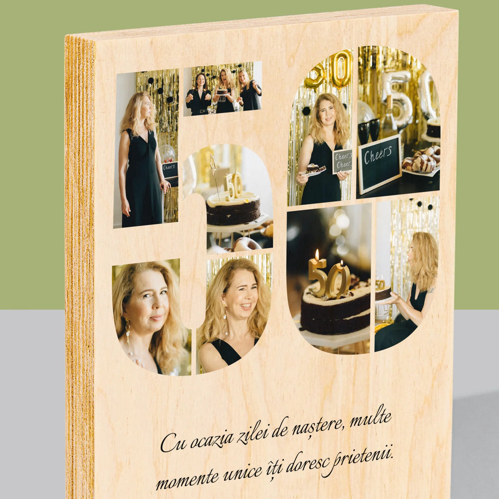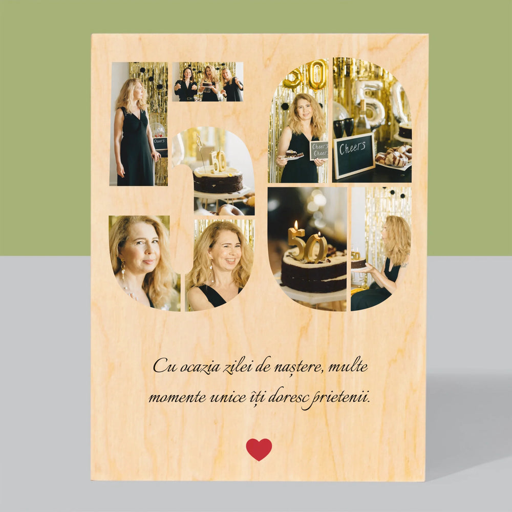 Formă Din Fotografii: A 50 Zi De Naștere - Imprimare pe lemn - verticală