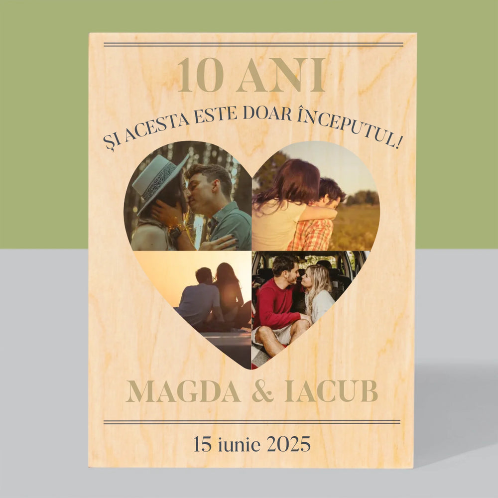 Formă Din Fotografii: Aniversare Inimă - Imprimare pe lemn - verticală