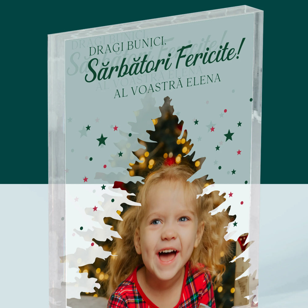 Formă Din Fotografii: Brad Sărbători - Bloc acrilic - Vertical
