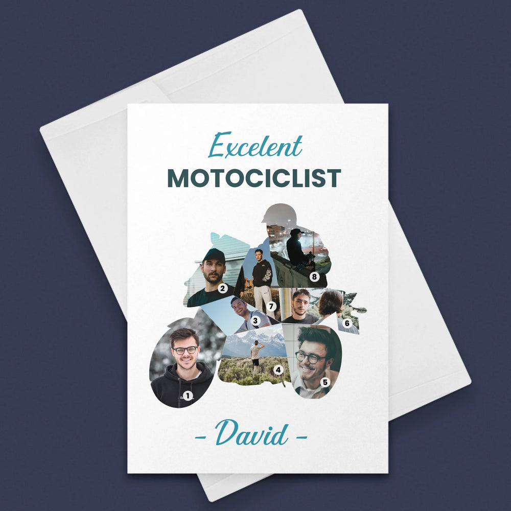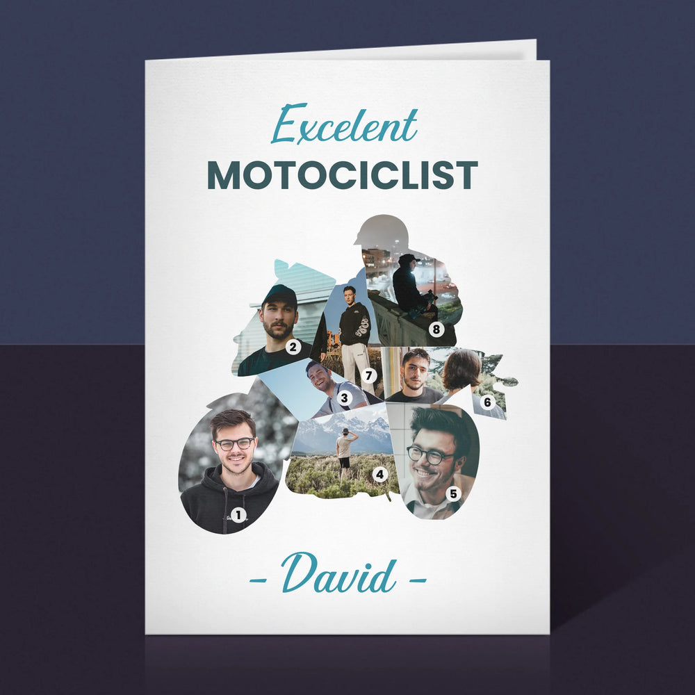 Formă Din Fotografii: Motociclist Excelent - Card Cu Felicitări
