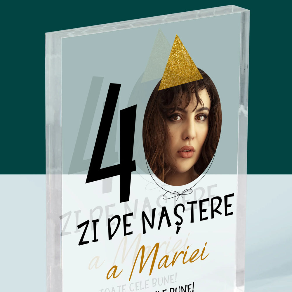 Fotografie Si Semnătură: A 40 Zi De Naștere Căciulă - Bloc acrilic - Vertical