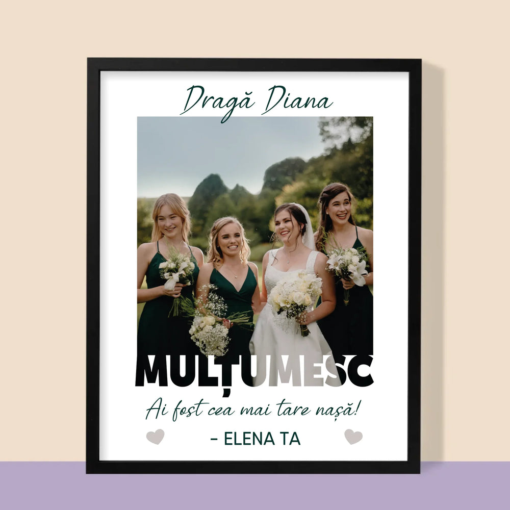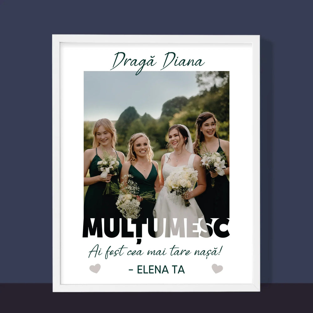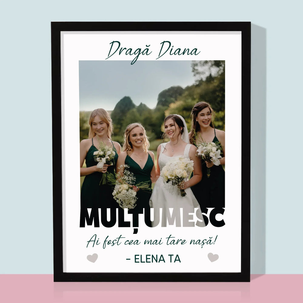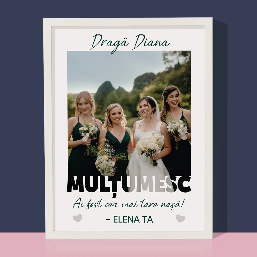 Fotografie Si Semnătură: Ai Fost Cea Mai Tare Nașă! - Imprimare cu ramă 30x40 - verticală