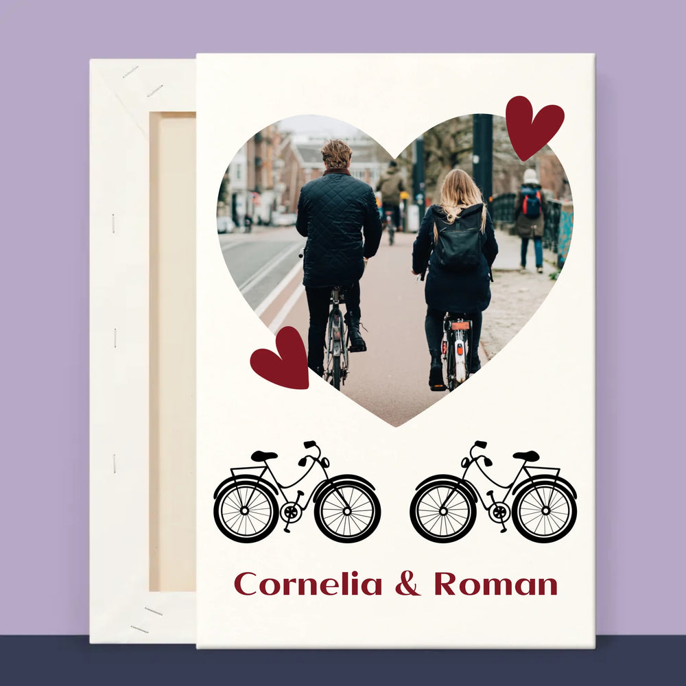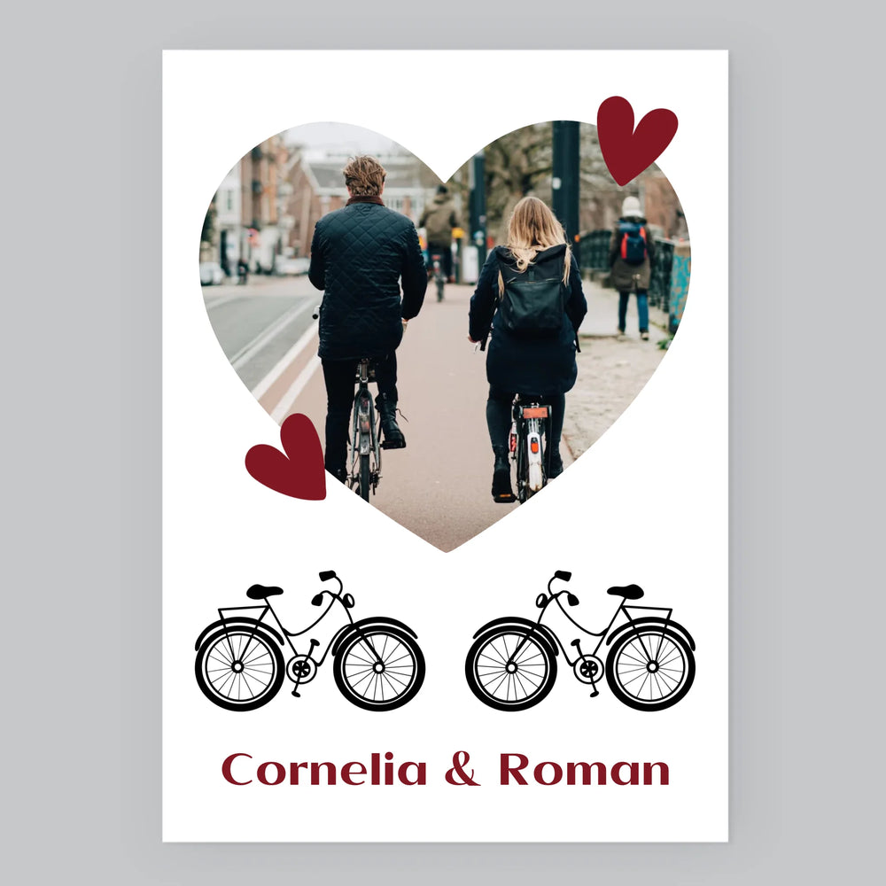 Fotografie Si Semnătură: Bicicletiști Cuplu - Imprimare cu ramă 30x40 - verticală