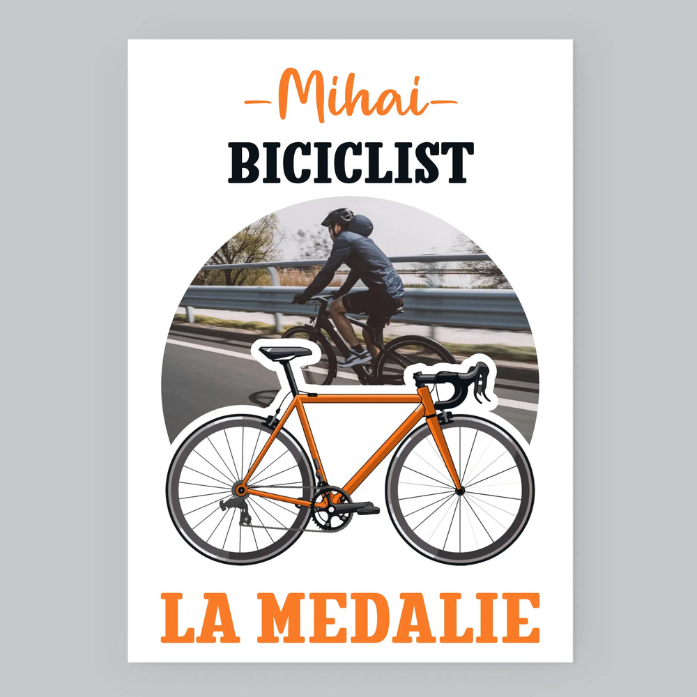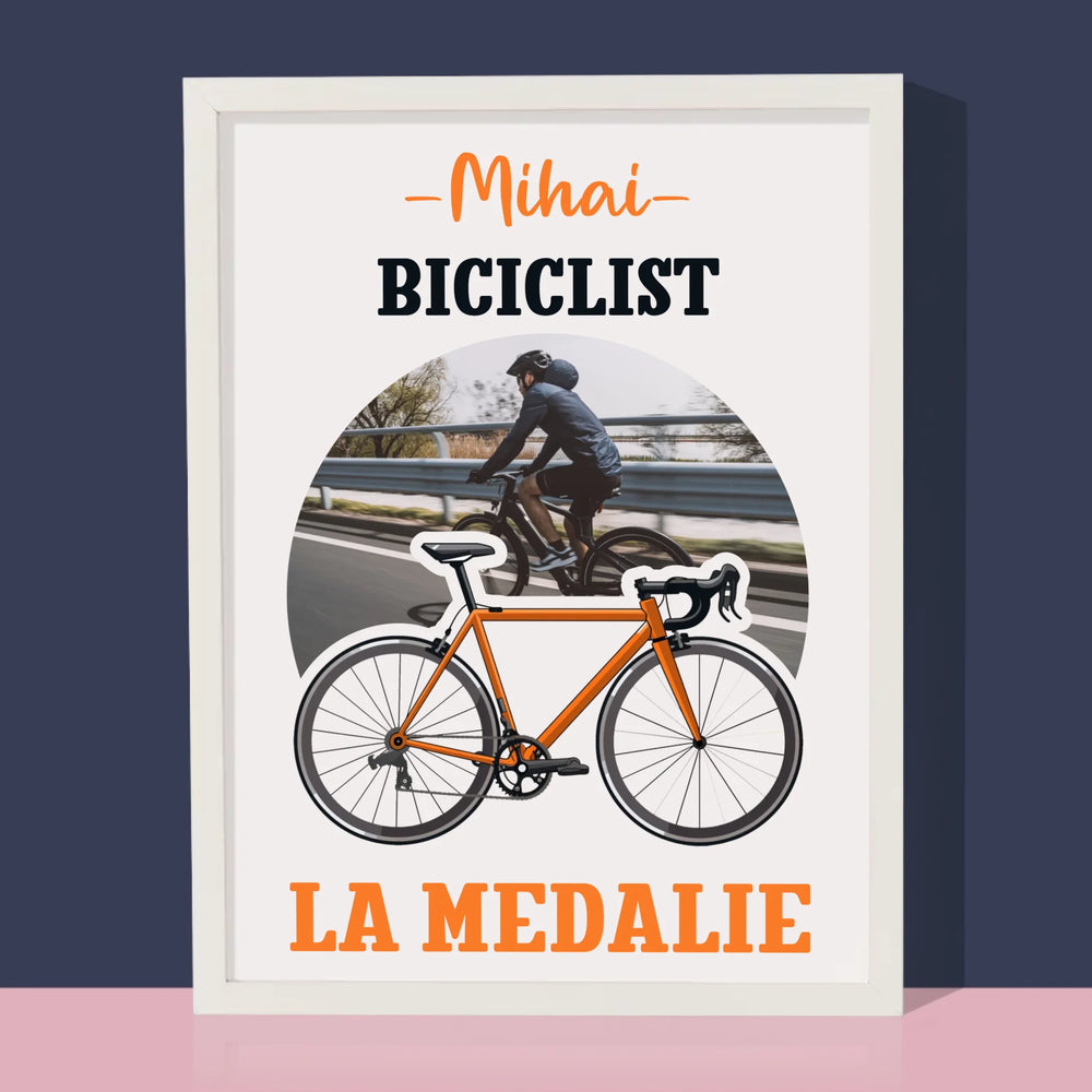 Fotografie Si Semnătură: Biciclist La Medalie - Imprimare cu ramă 30x40 - verticală