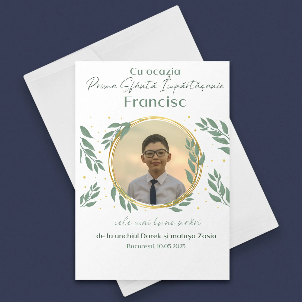 Fotografie Si Semnătură: Cu Ocazia Primei Sfinte Împărtășanii - Card cu felicitări