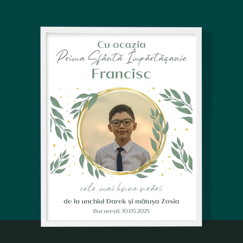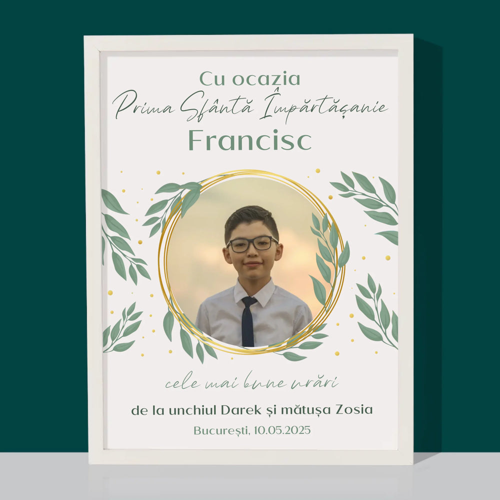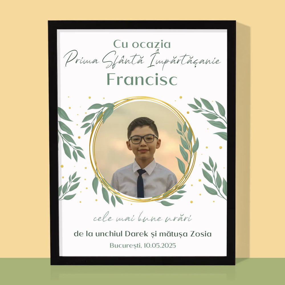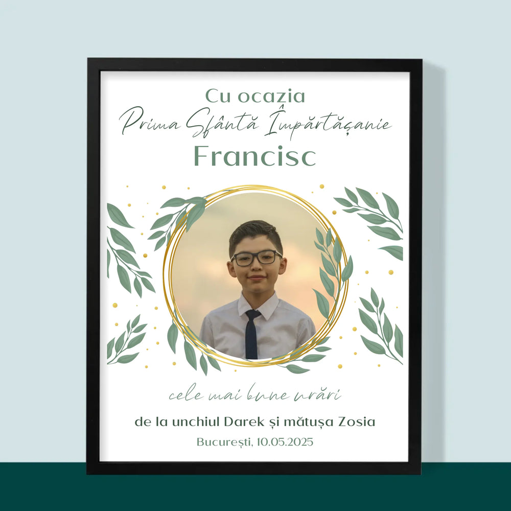Fotografie Si Semnătură: Cu Ocazia Primei Sfinte Împărtășanii - Imprimare cu ramă 30x40 - verticală