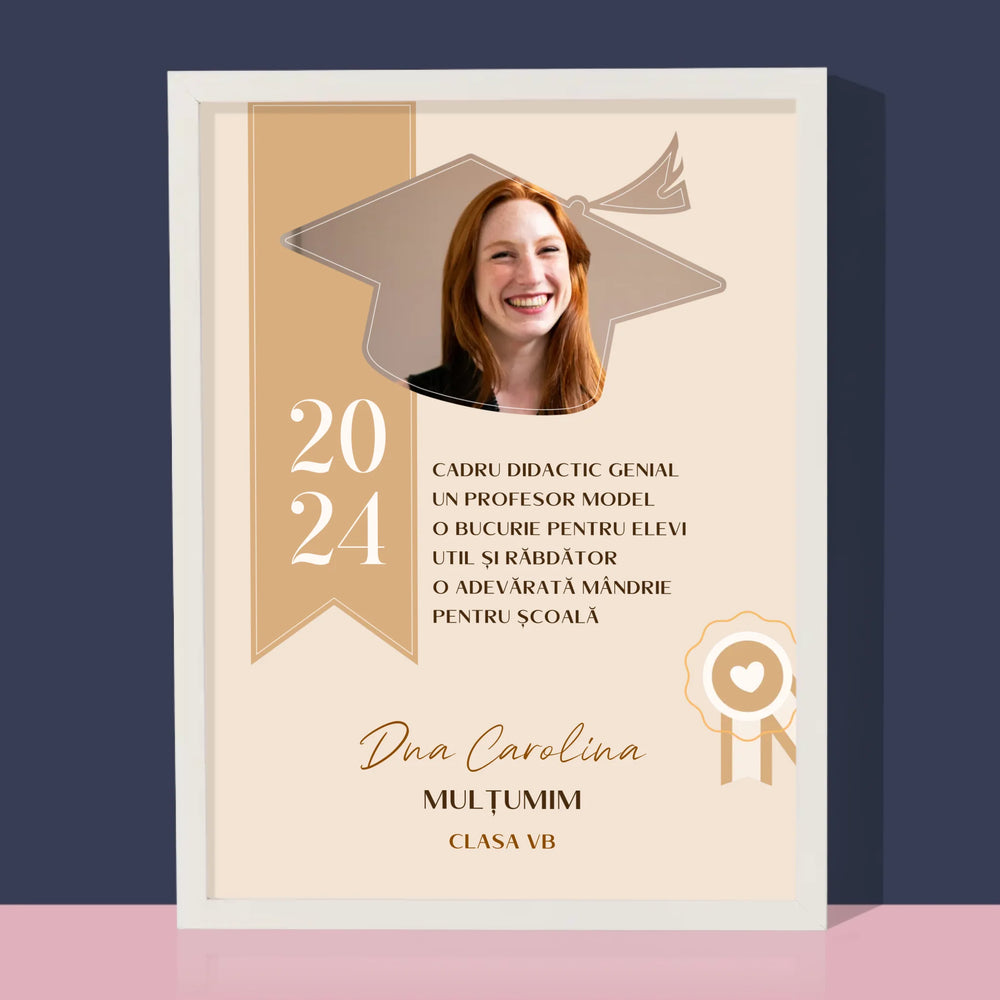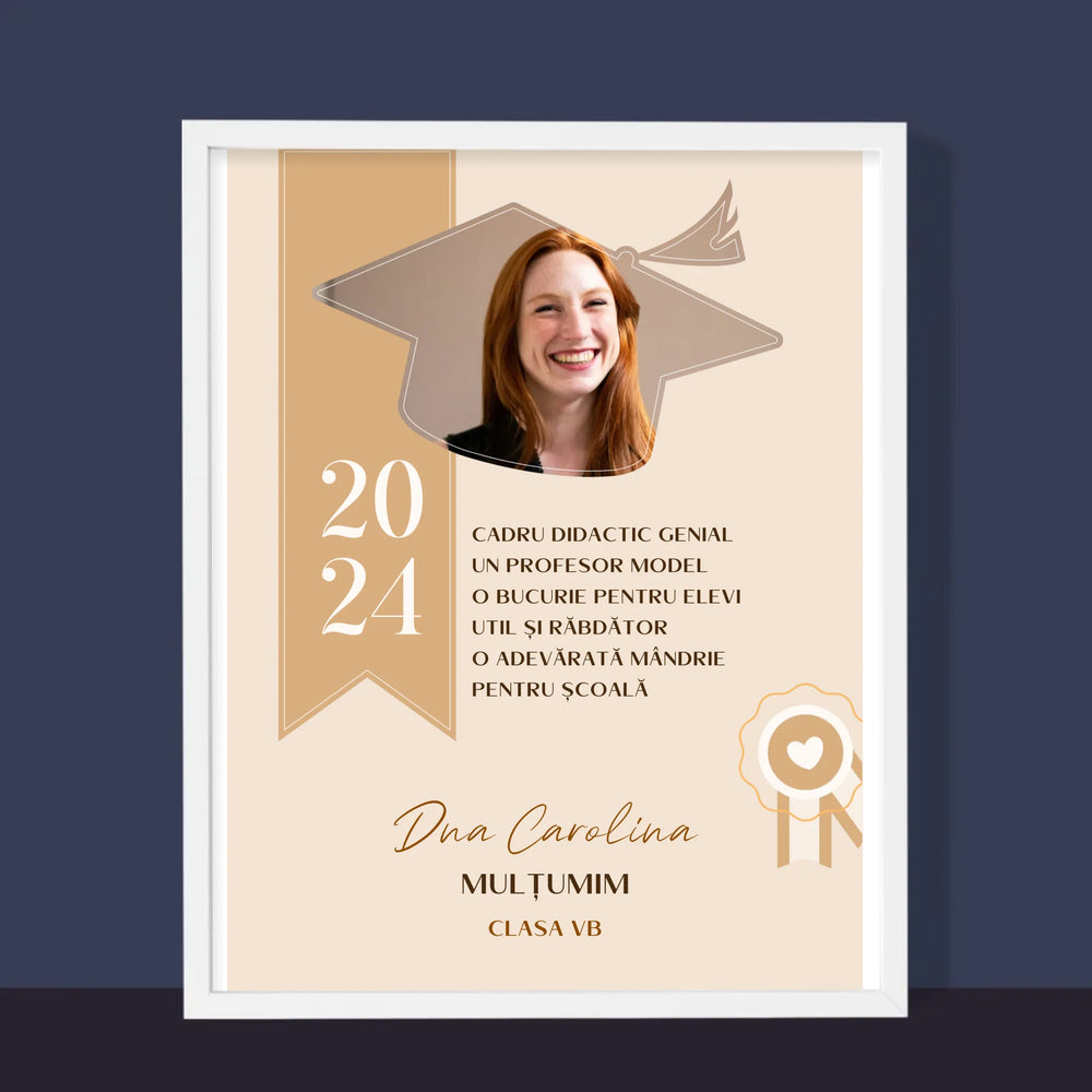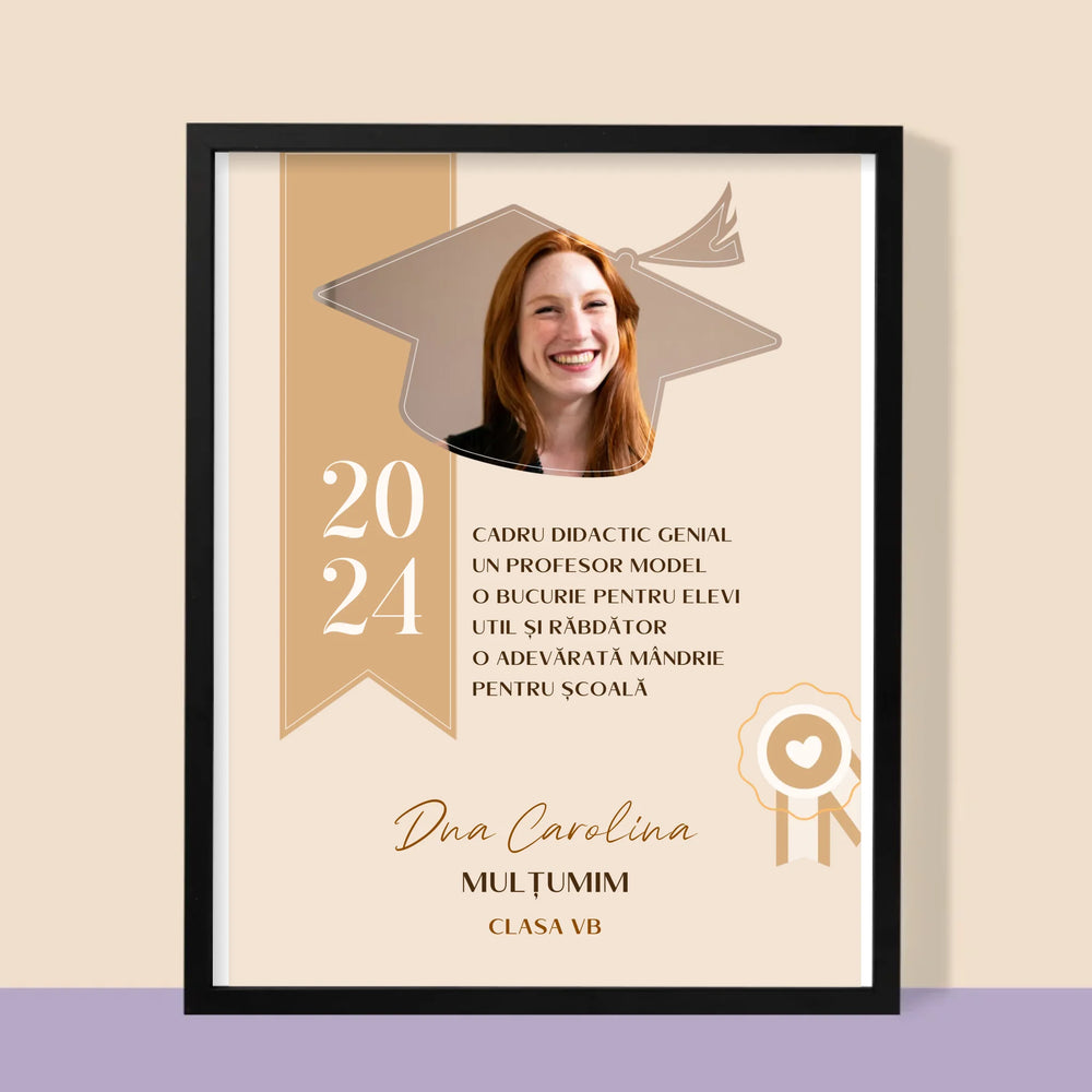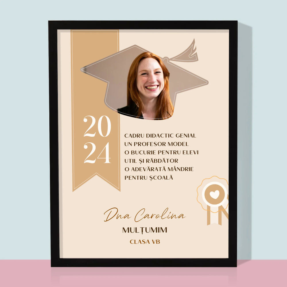 Fotografie Si Semnătură: Diplomă De Recunoștință Pentru Învățătoare - Imprimare cu ramă 30x40 - verticală