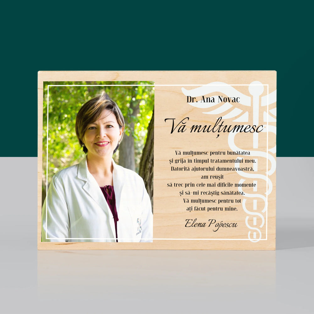 Fotografie Si Semnătură: Doctore Vă Mulțumesc - Imprimare pe lemn - horizontală