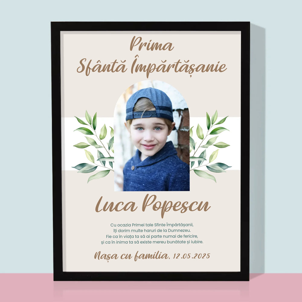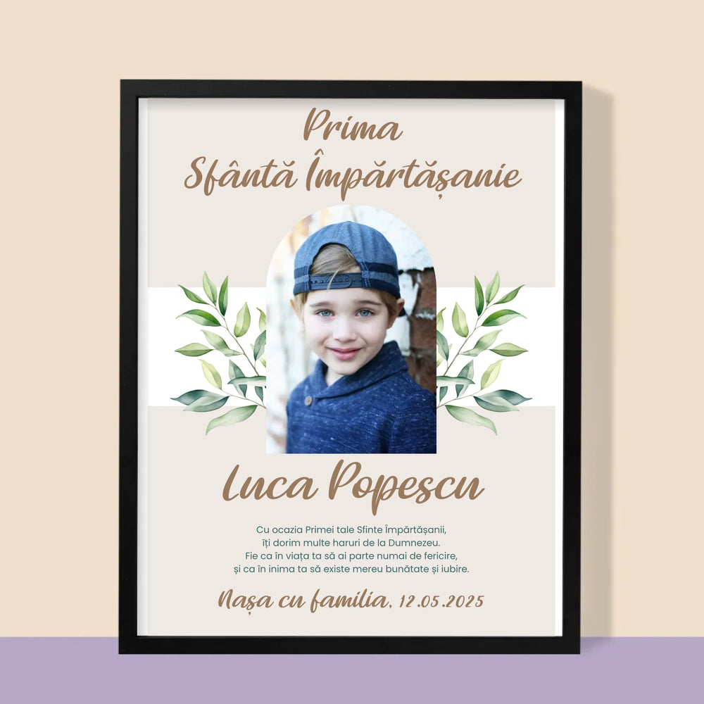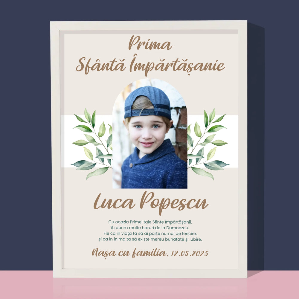 Fotografie Si Semnătură: Felicitări Cu Ocazia Primei Sfinte Împărtășanii - Imprimare cu ramă 30x40 - verticală