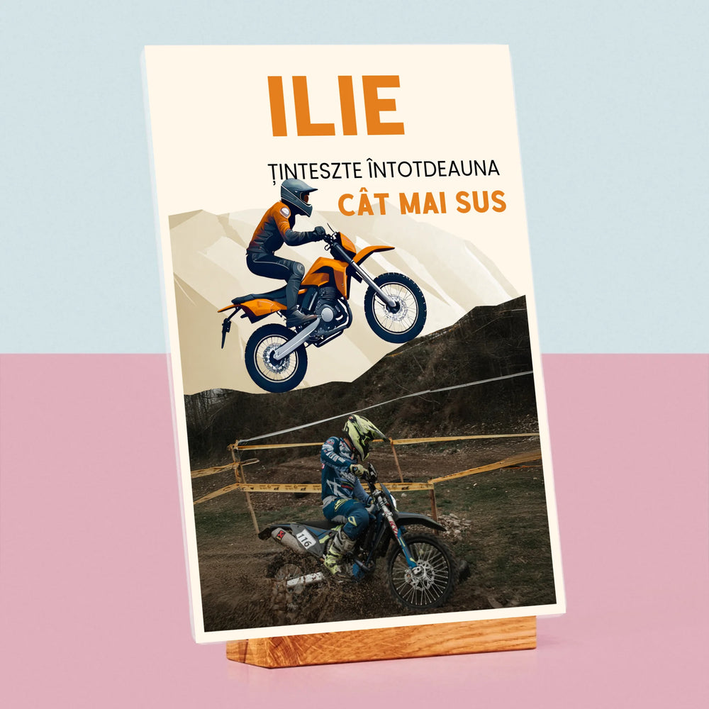 Datorită suportului elegant din lemn, fotografia poate fi așezată oriunde și este stabilă.