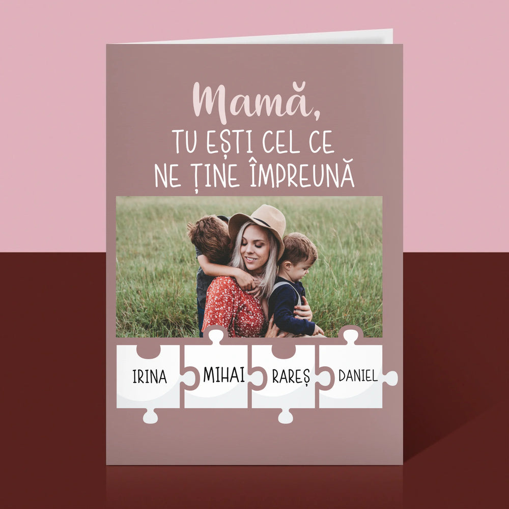 Fotografie Si Semnătură: Mamă, Tu Ești Ceea Care Ne Ține Împreună - Card cu felicitări