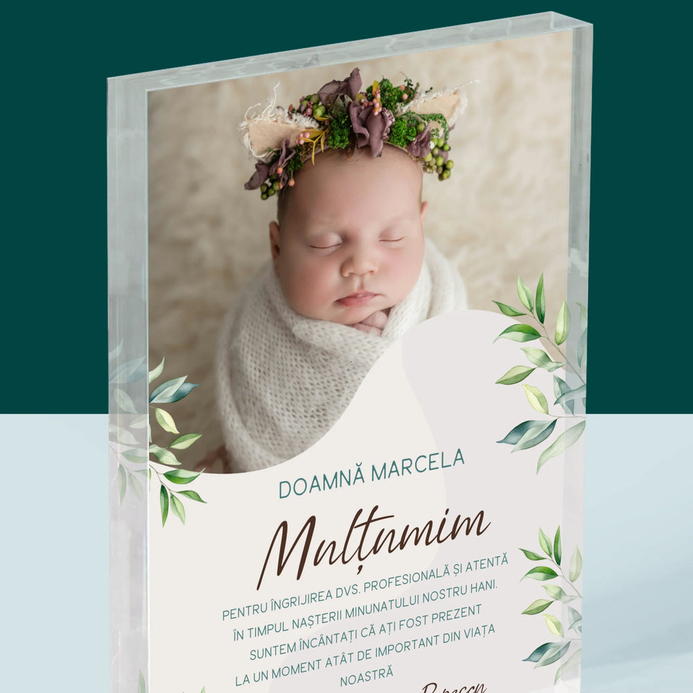 Fotografie Si Semnătură: Mulțumiri Moașei - Bloc acrilic - Vertical