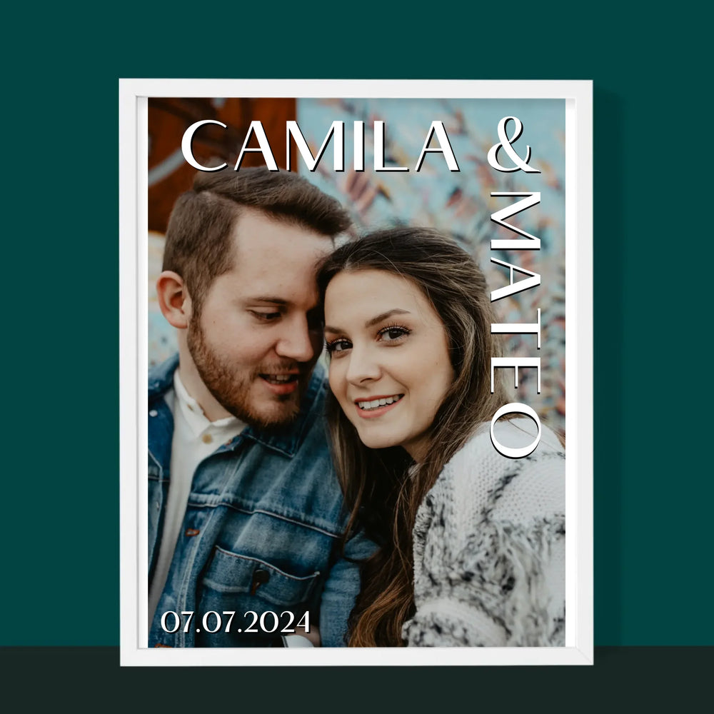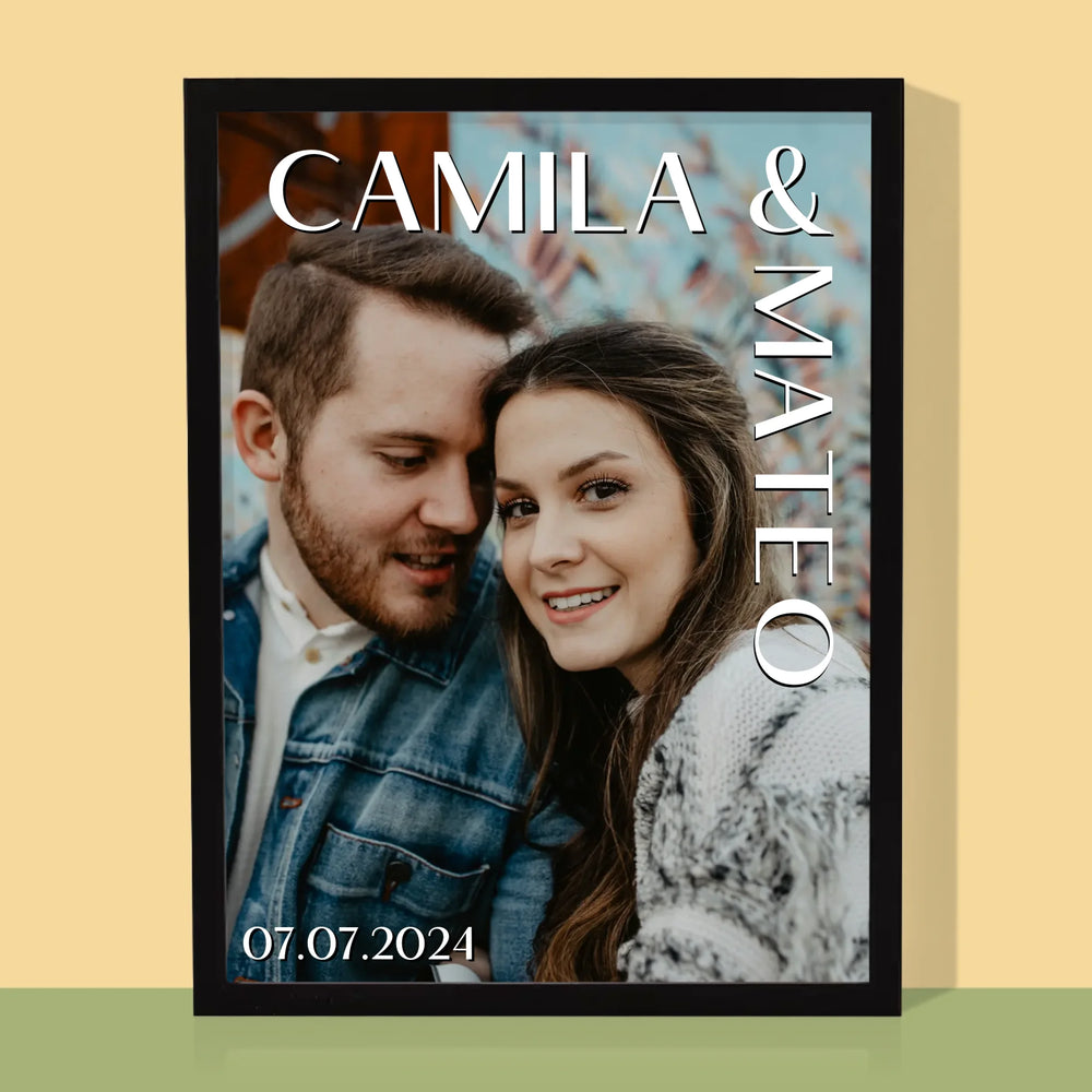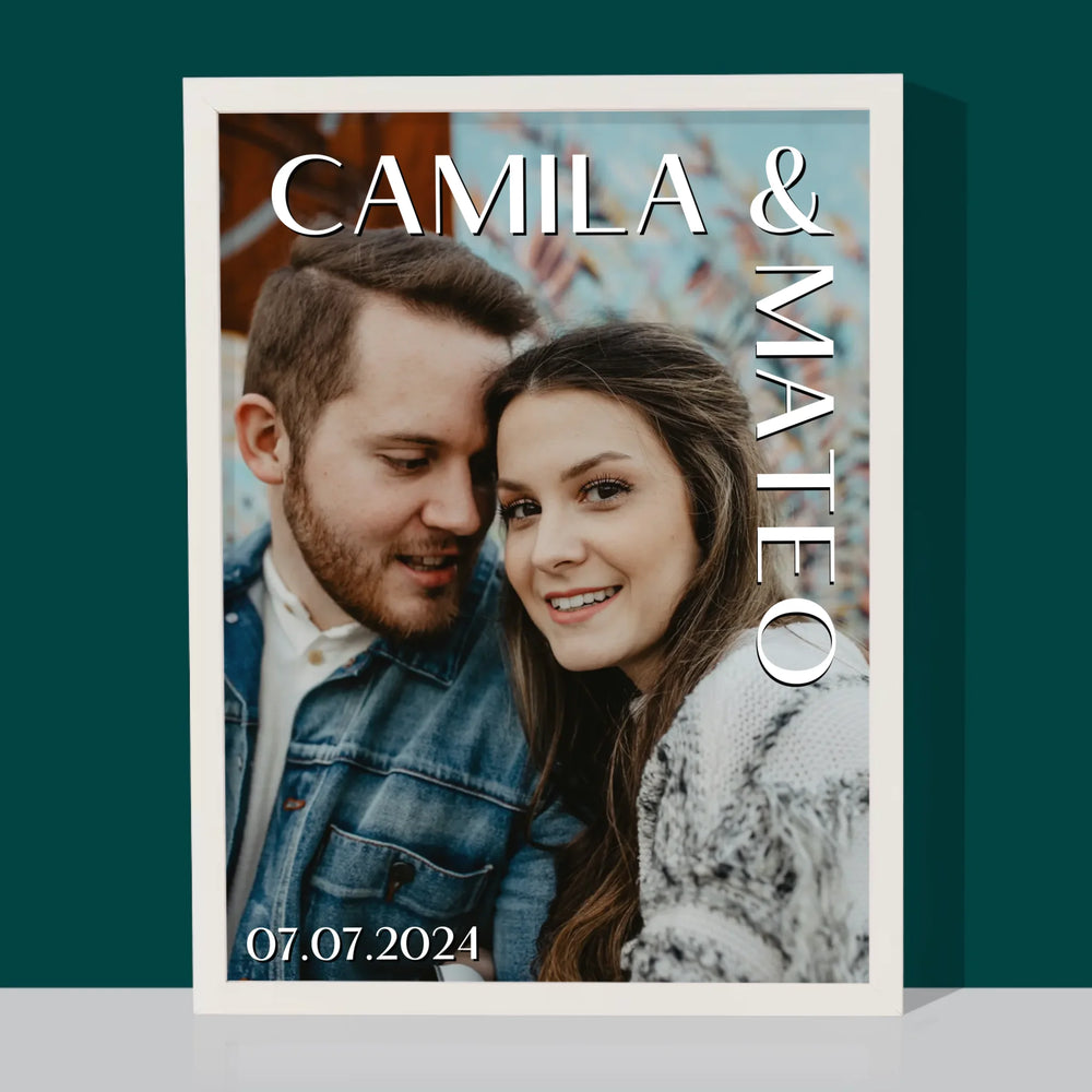 Fotografie Si Semnătură: Nume Nuntă - Imprimare cu ramă 30x40 - verticală