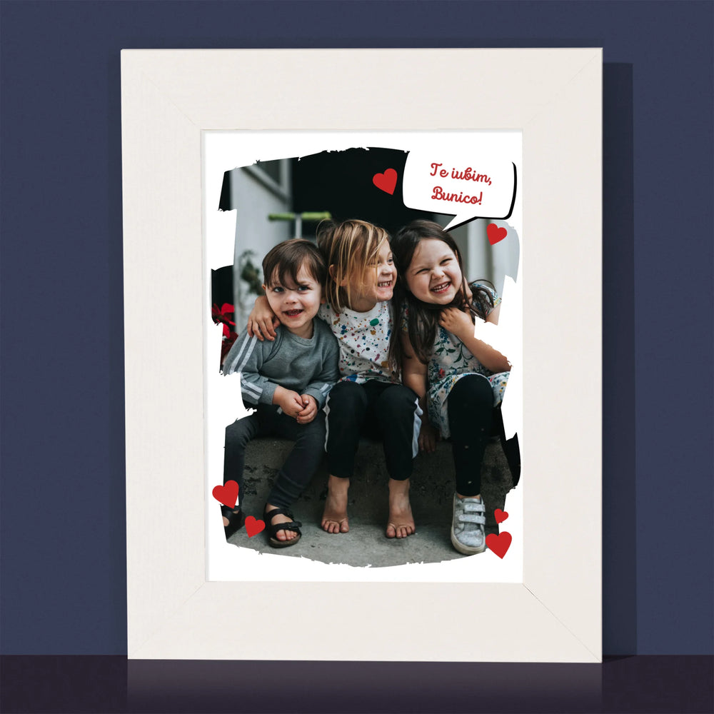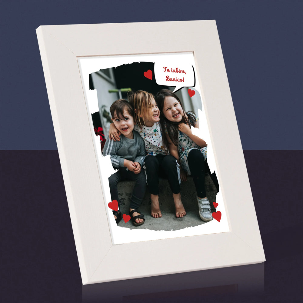 • O ramă pentru fotografii la alegere cu model personalizat.