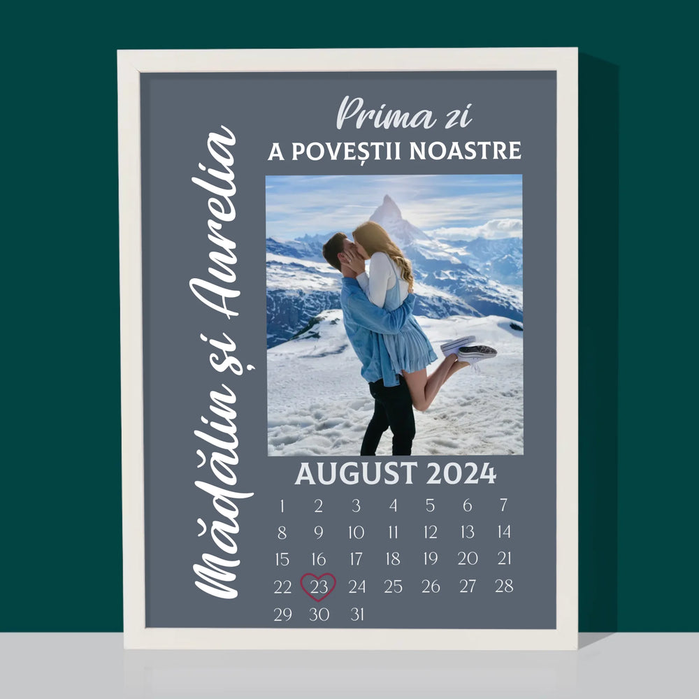 Fotografie Si Semnătură: Prima Zi A Poveștii Noastre - Imprimare cu ramă 30x40 - verticală