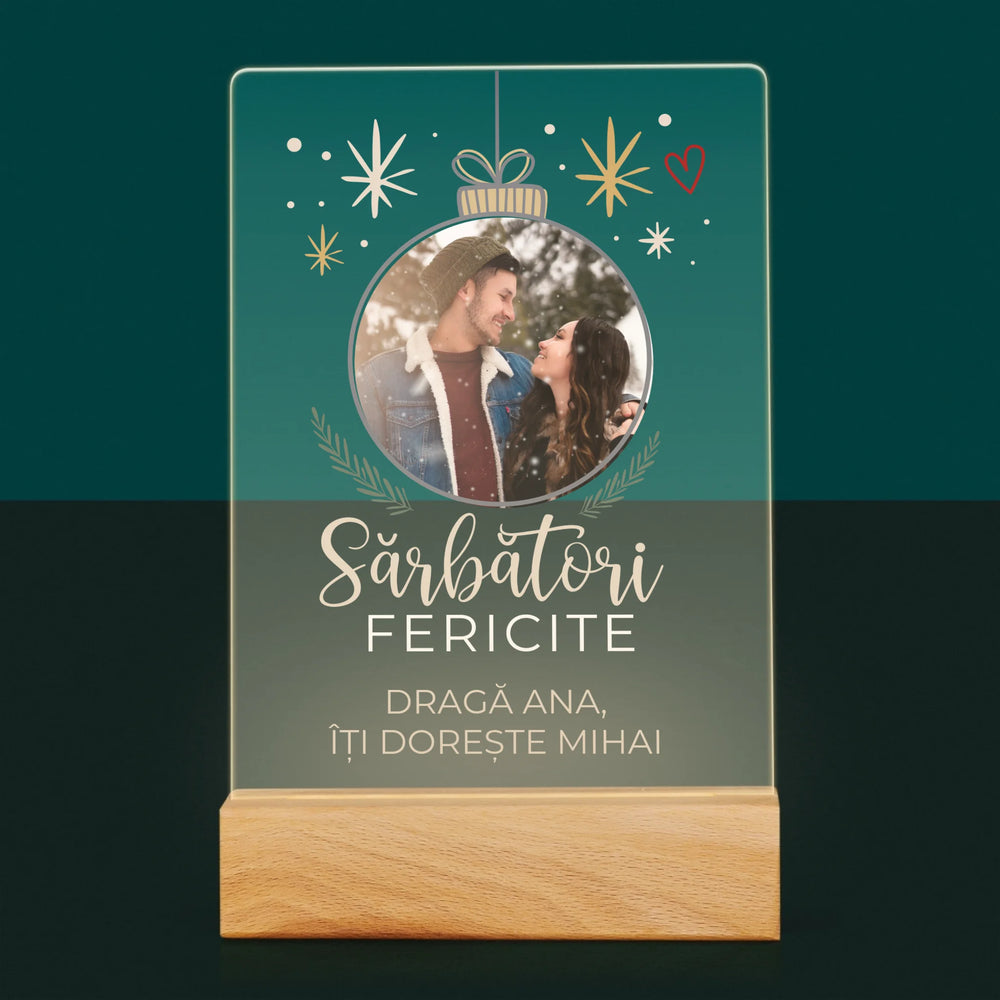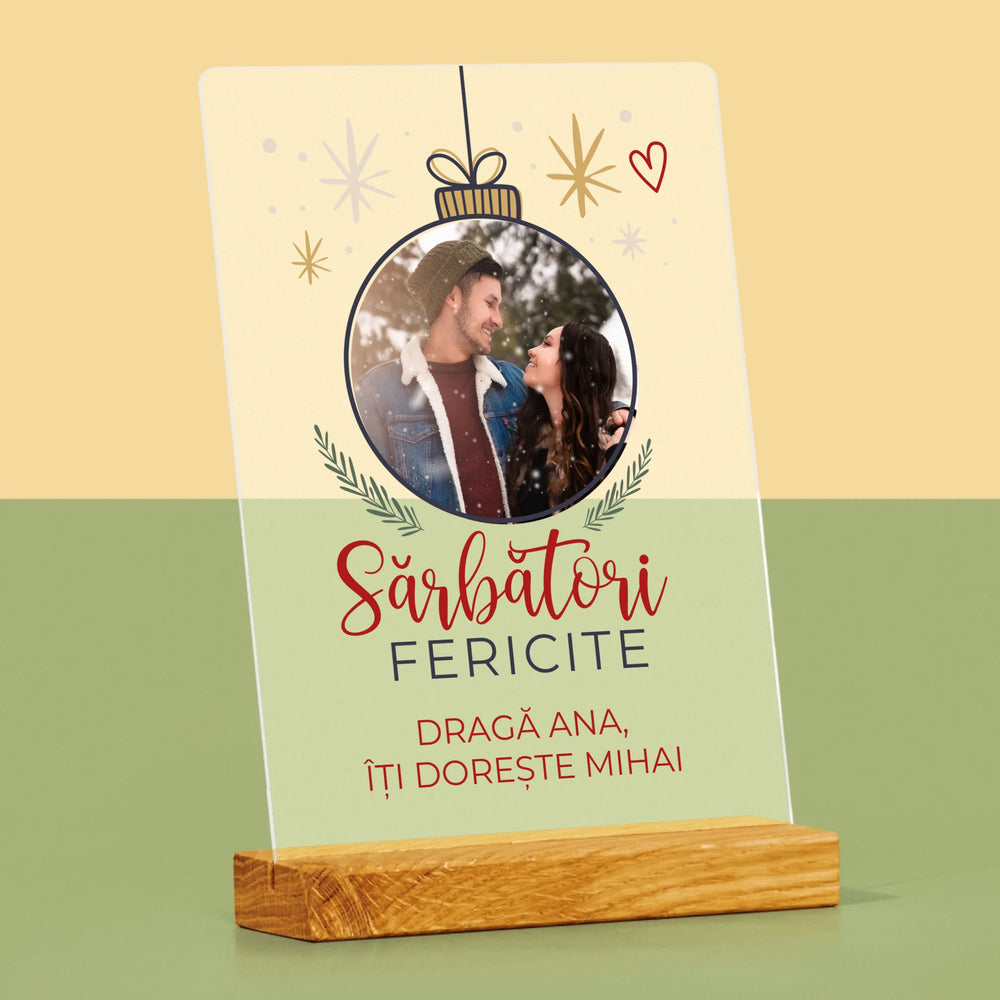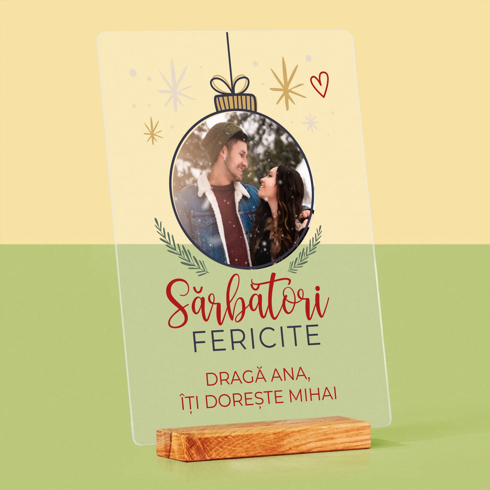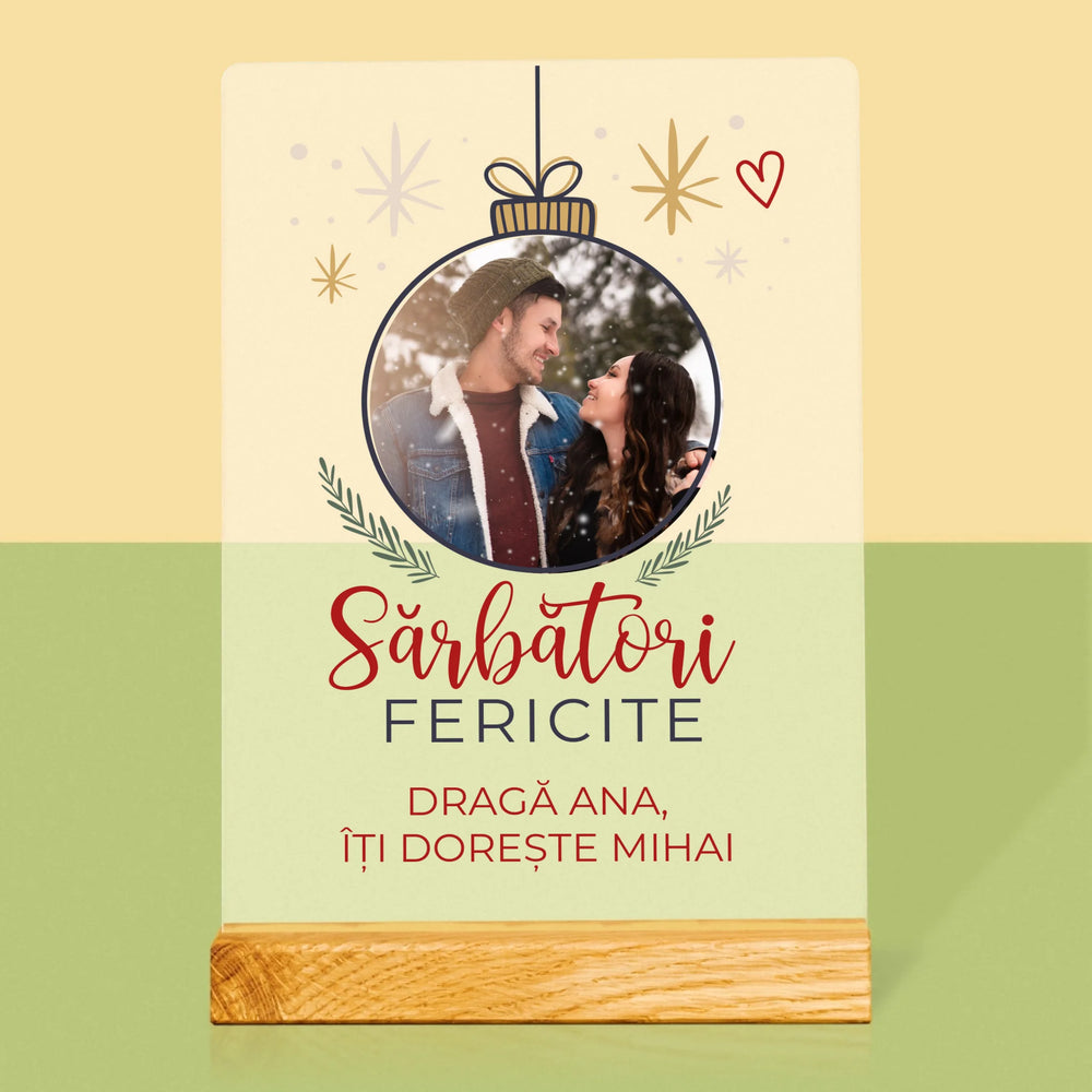 Fotografie Si Semnătură: Sărbători Fericite Jucărie De Brad - Imprimare pe sticlă acrilică