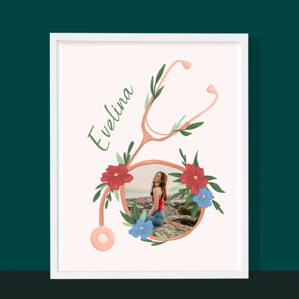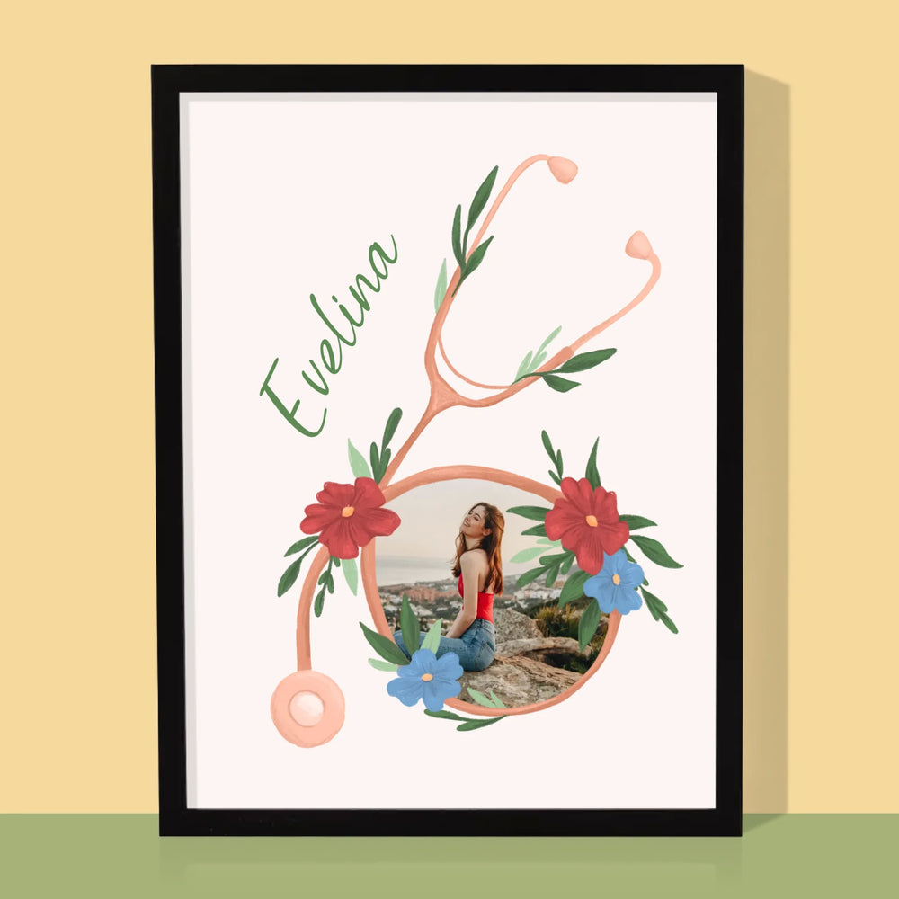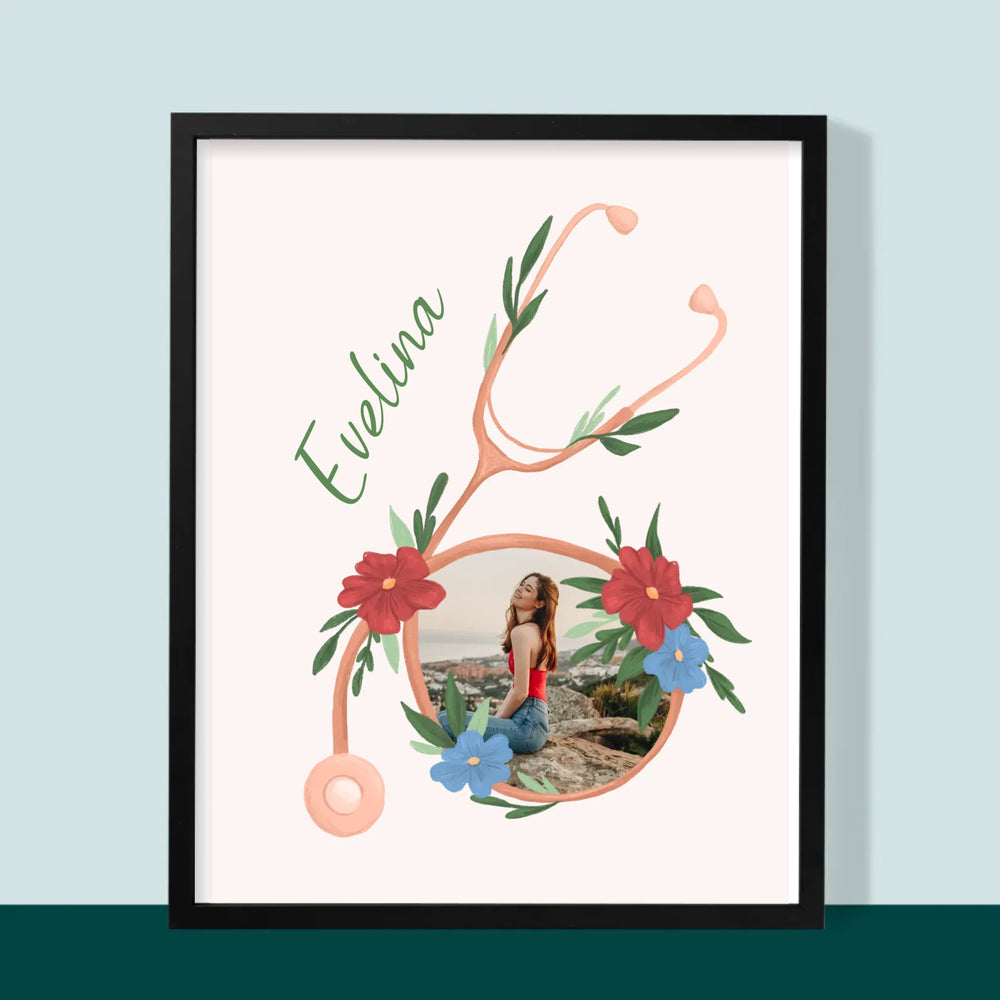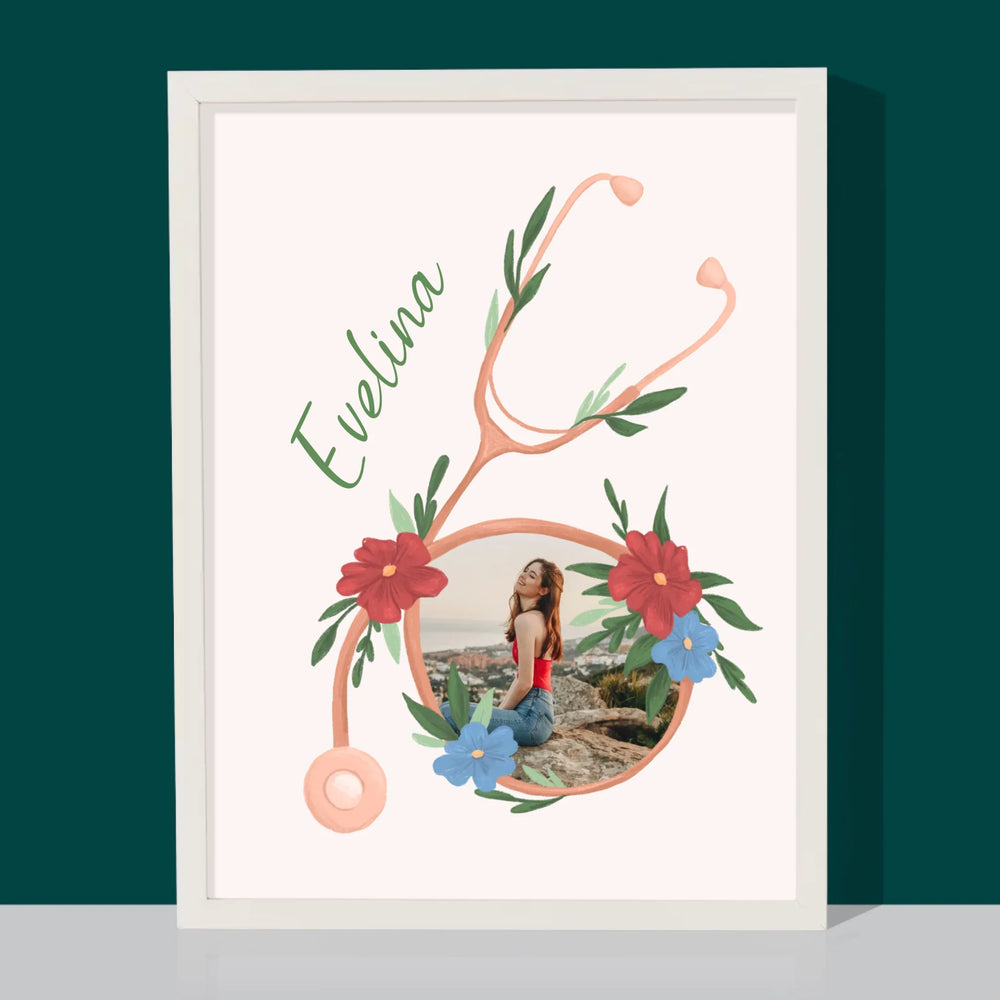 Fotografie Si Semnătură: Stetoscopul Cu Flori - Imprimare cu ramă 30x40 - verticală