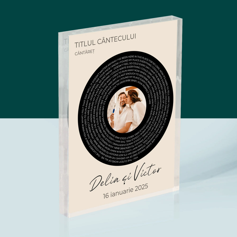 Fotografie Si Semnătură: Textul Cântecului Cu Fotografia Ta - Bloc acrilic - Vertical