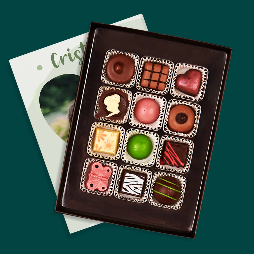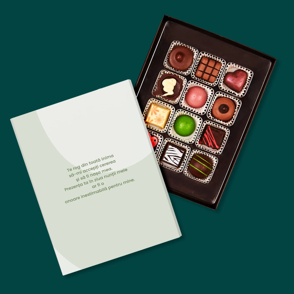 Dimensiuni: 20x15x3,5 cm. Număr pralină: 12.