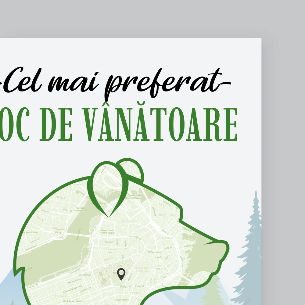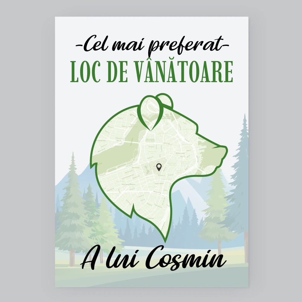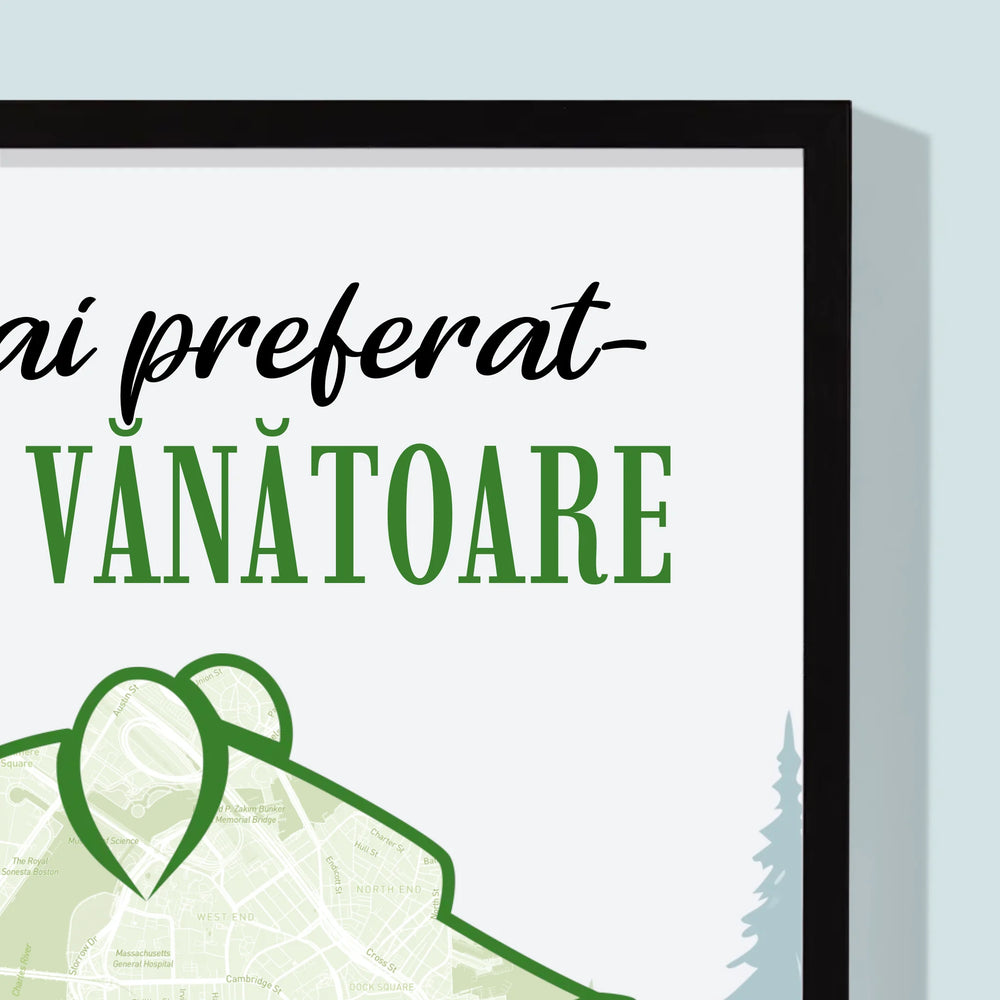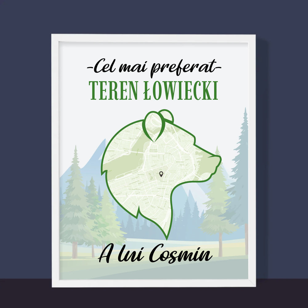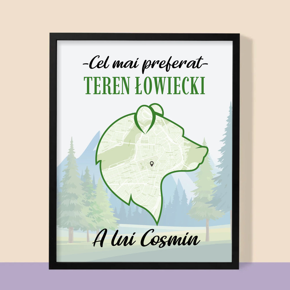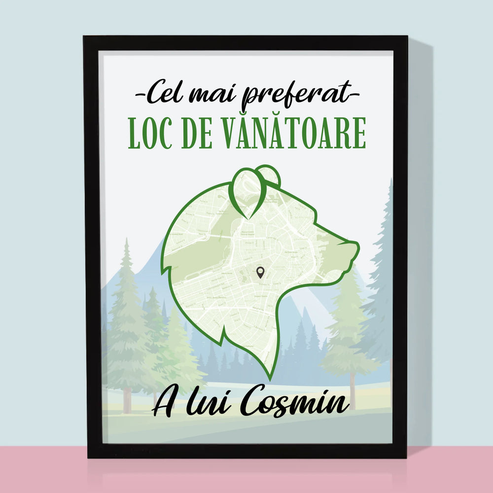 Harta Oraș: Cel Mai Preferat Loc De Vînătoare - Imprimare cu ramă 30x40 - verticală
