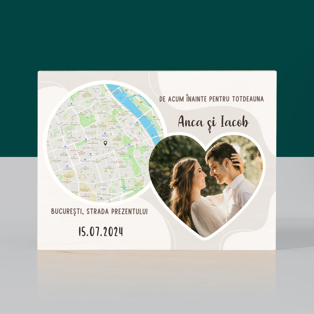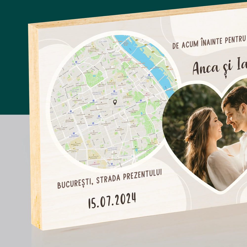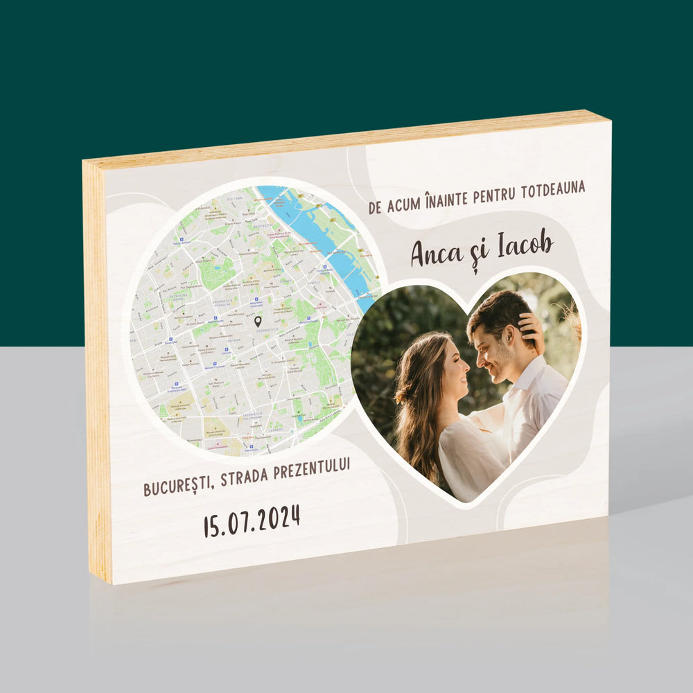 Harta Oraș: De Acum Înainte Pentru Totdeauna - Imprimare pe lemn - horizontală