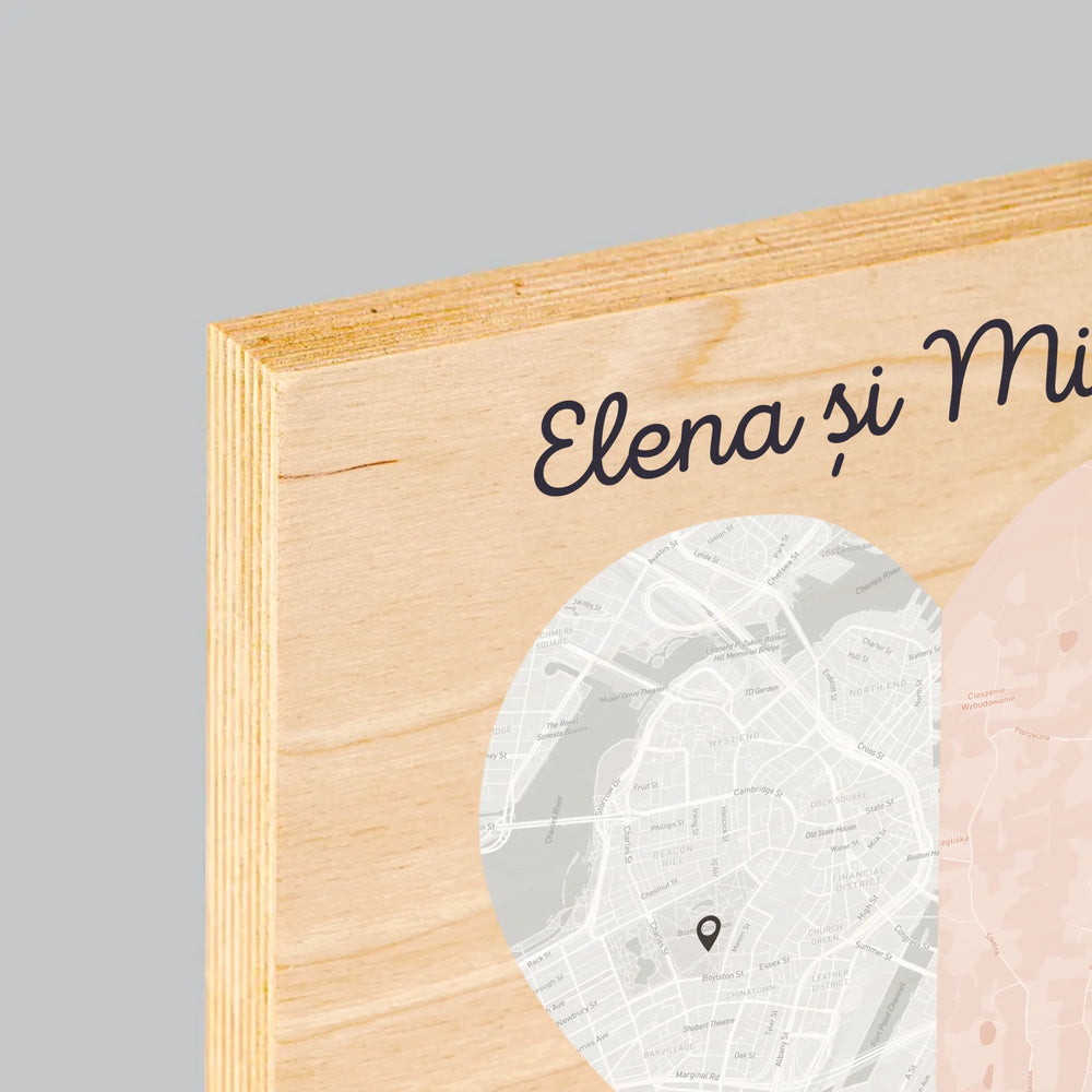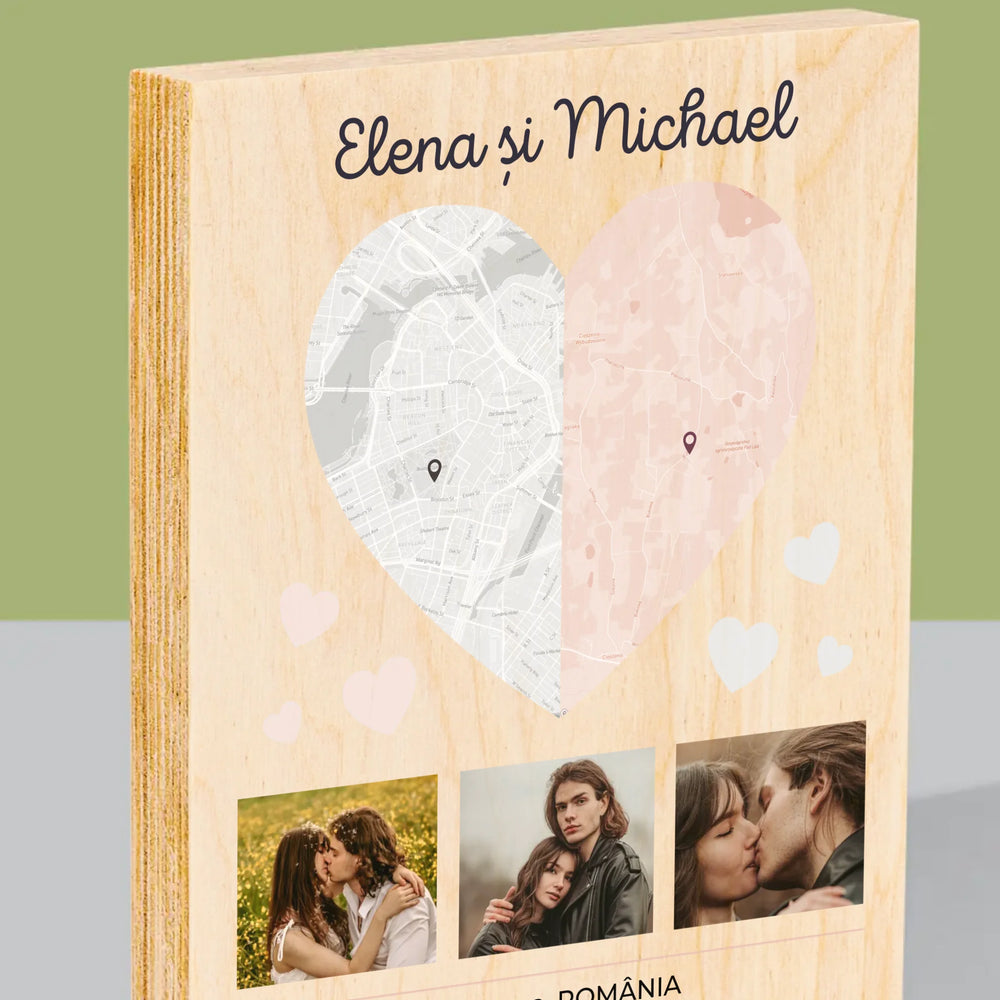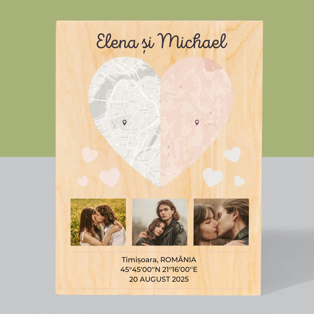 Harta Oraș: Două Jumătăți De Inimă - Imprimare pe lemn - verticală