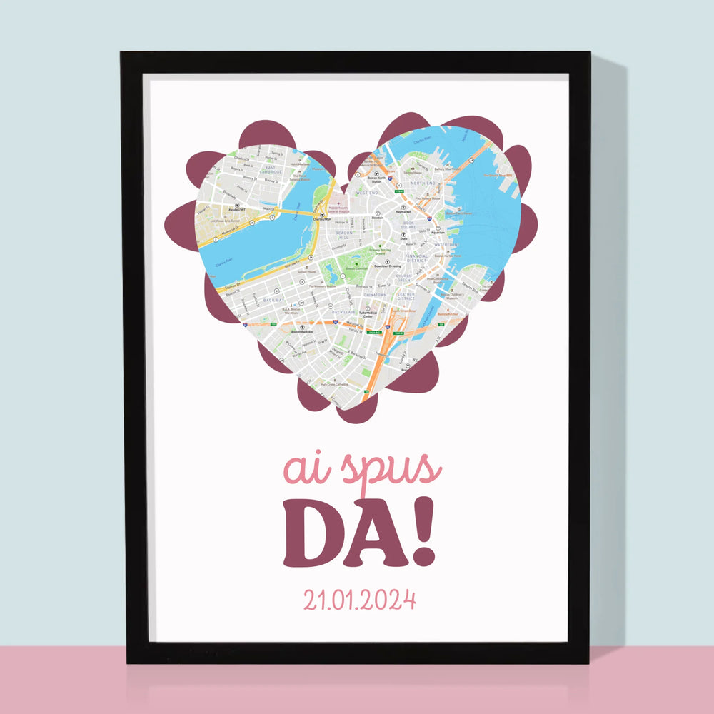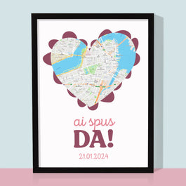 Harta Oraș: Harta Orașului: Ai Spus Da! - Imprimare cu ramă 30x40 - verticală