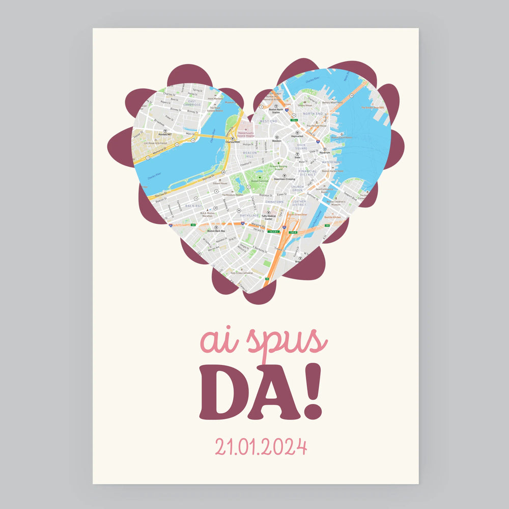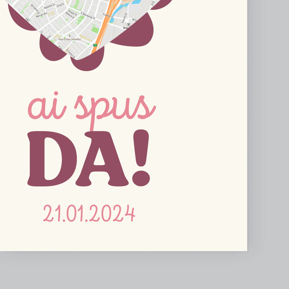 Harta Oraș: Harta Orașului: Ai Spus Da! - Imprimare Cu Ramă 30X40 (Verticală)