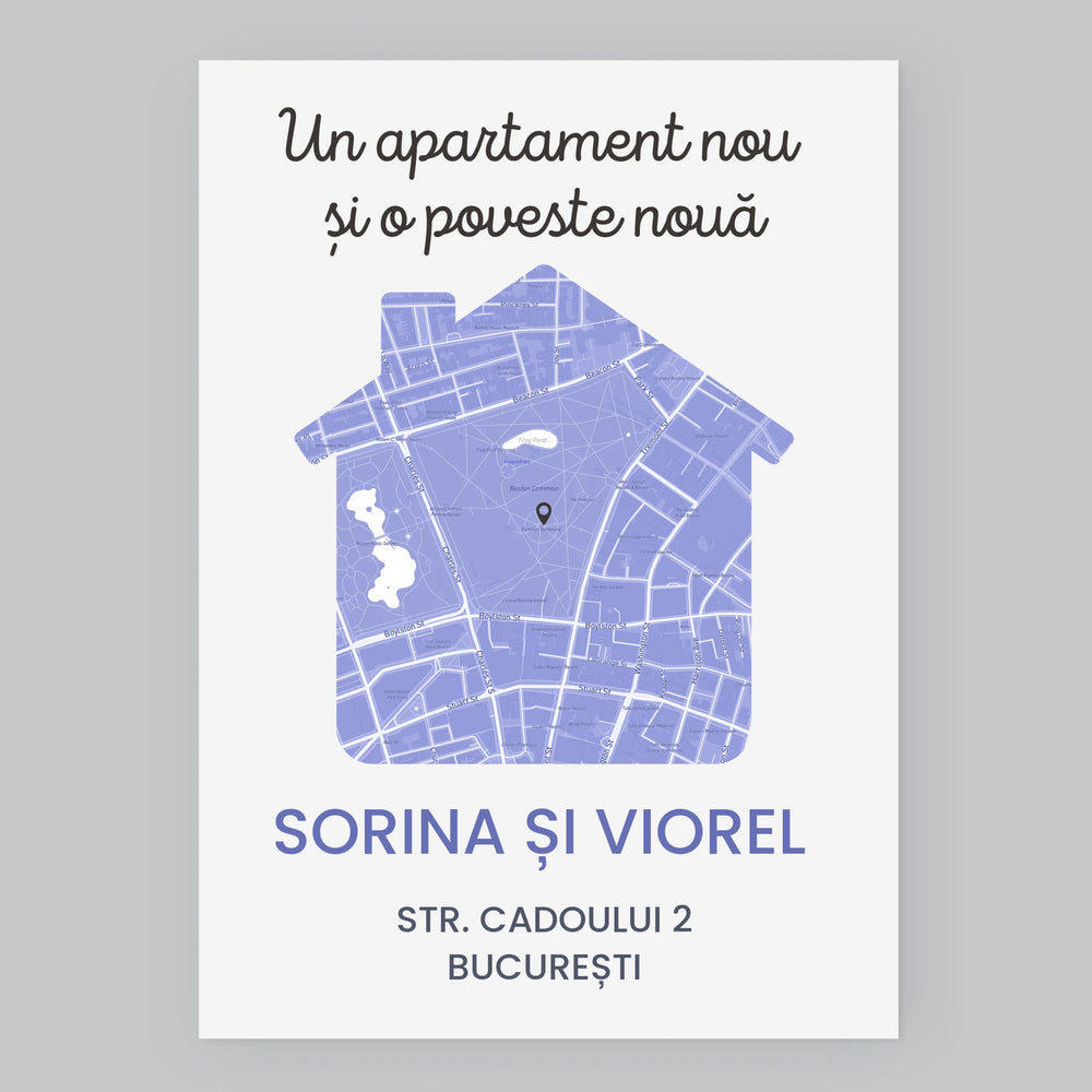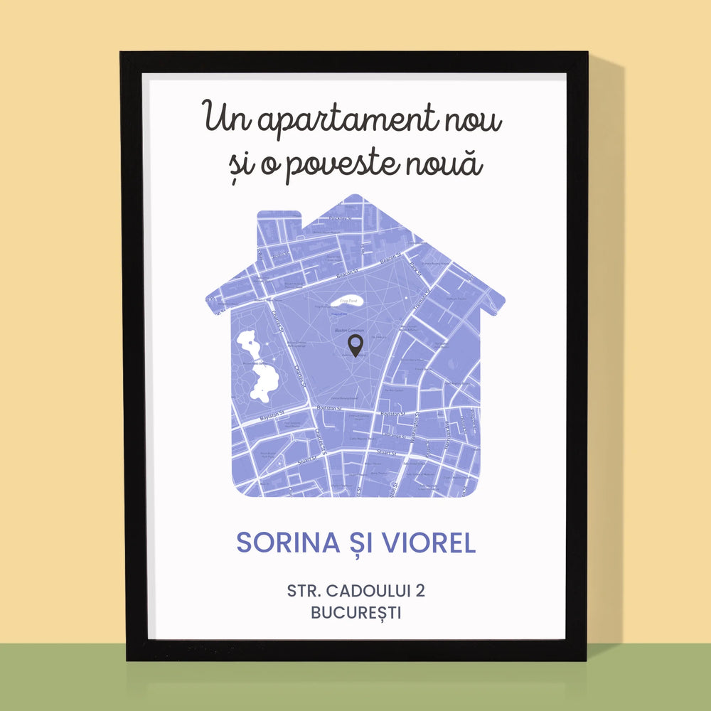 Harta Oraș: Harta Orașului: Apartament Nou - Imprimare cu ramă 30x40 - verticală