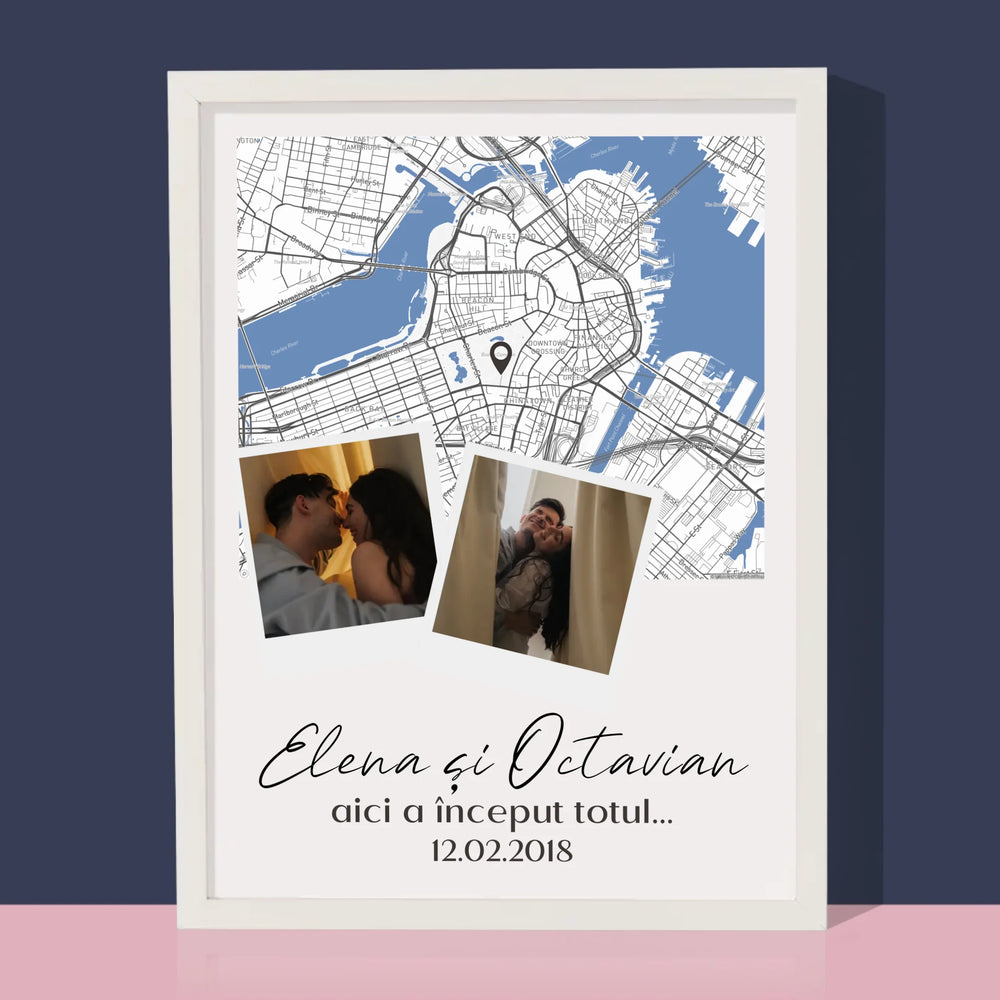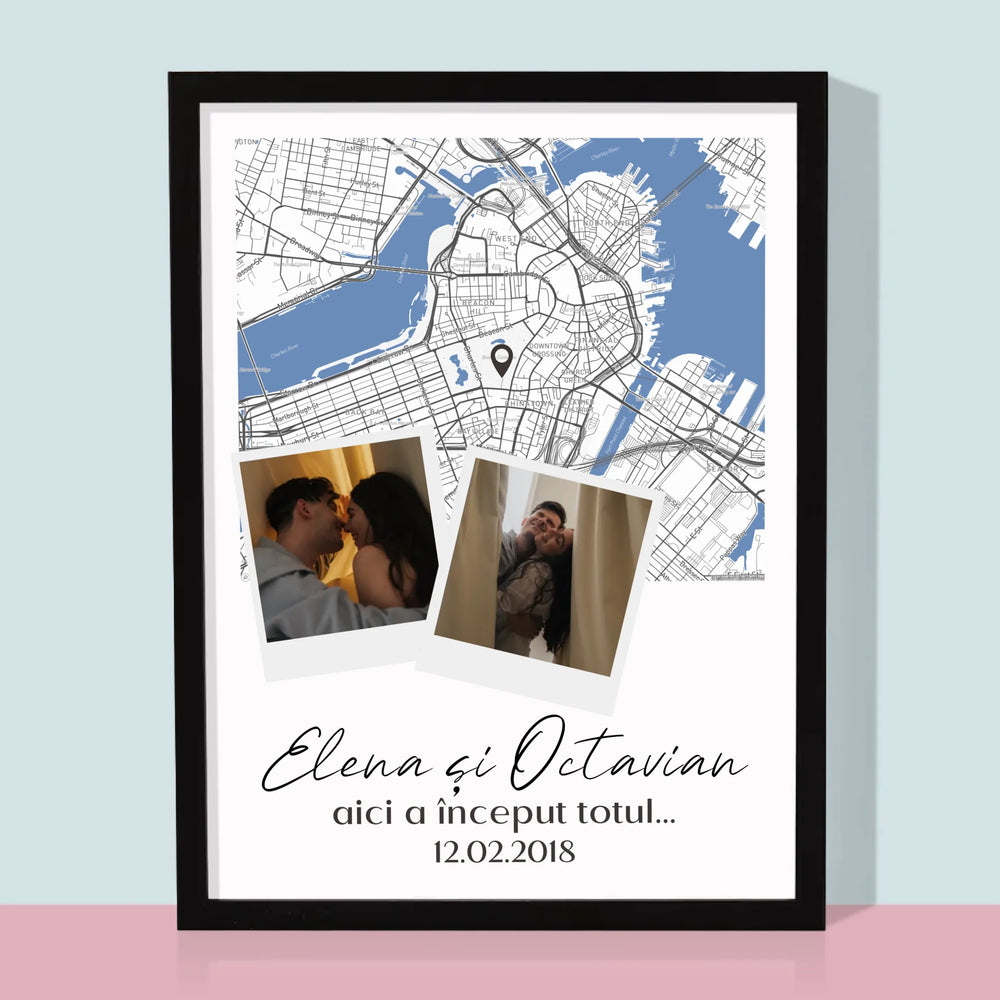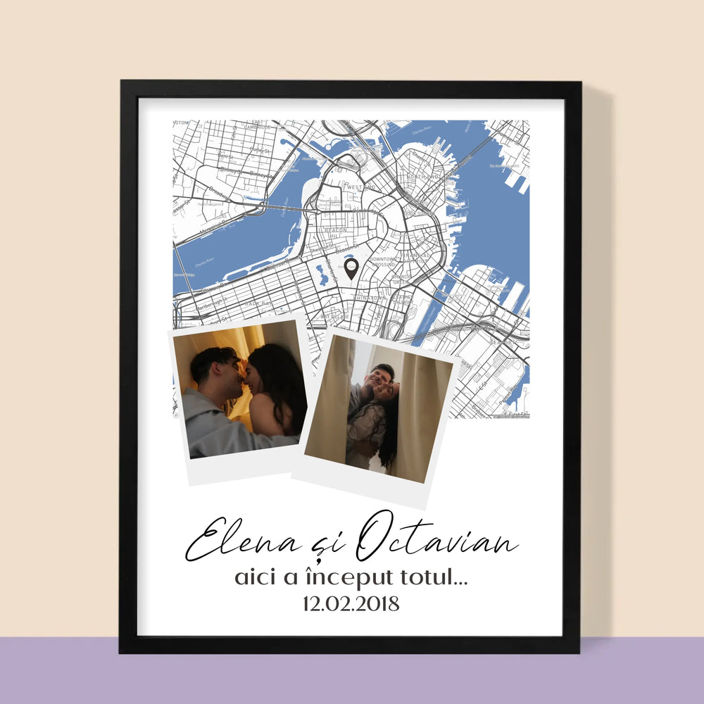Harta Oraș: Harta Orașului: Unde A Început Totul - Imprimare cu ramă 30x40 - verticală