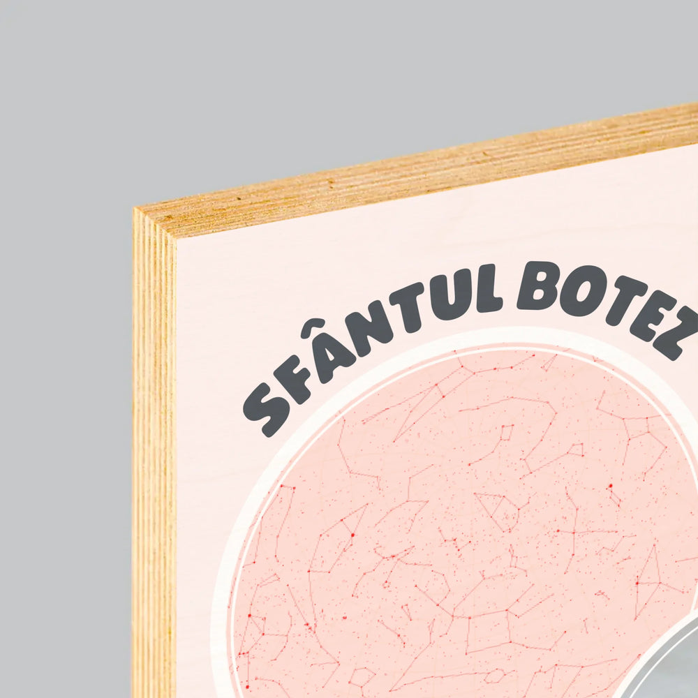Harta Stelelor: Botez - Imprimare pe lemn - verticală