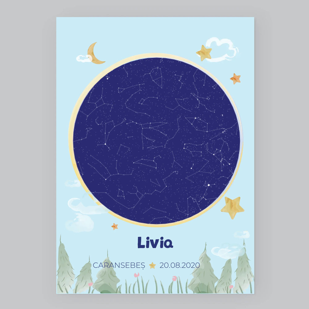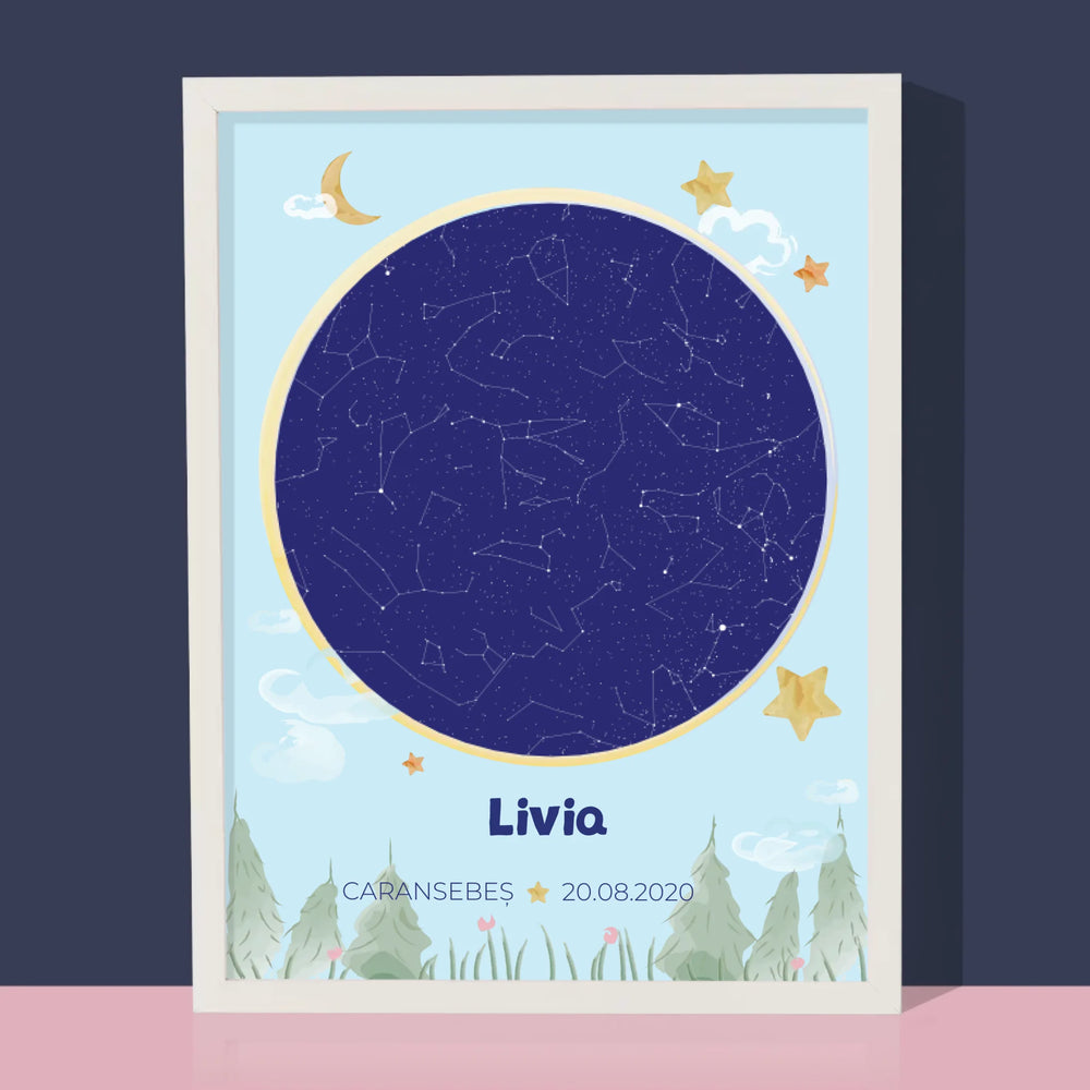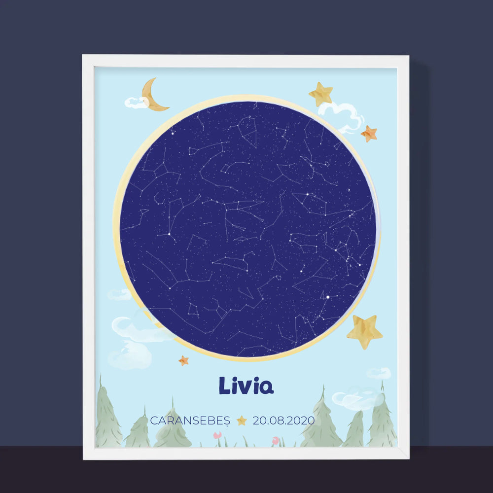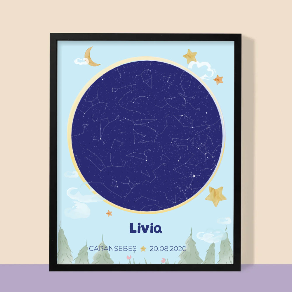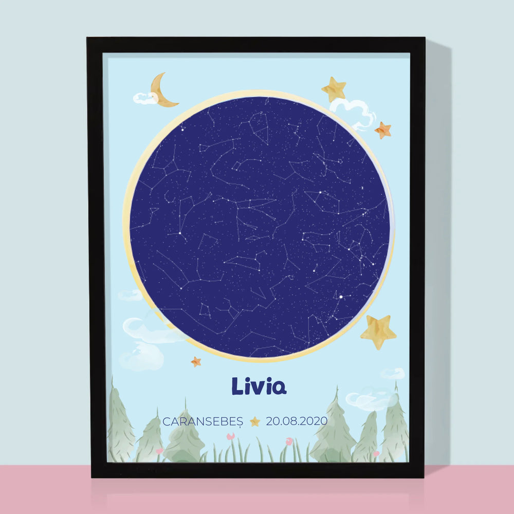 Harta Stelelor: Harta Stelelor: Pentru Copil - Imprimare cu ramă 30x40 - verticală