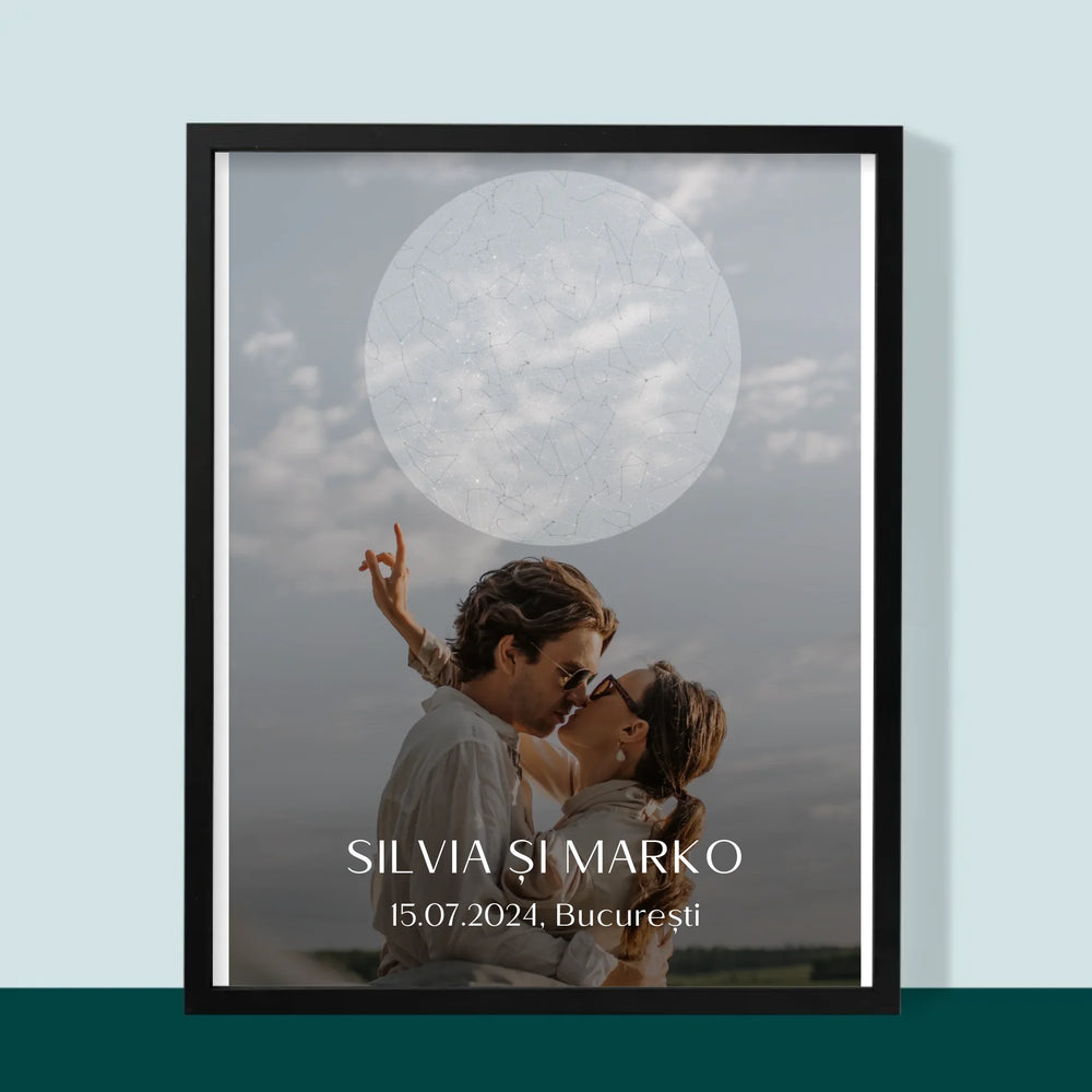 Harta Stelelor: Nunta - Imprimare cu ramă 30x40 - verticală
