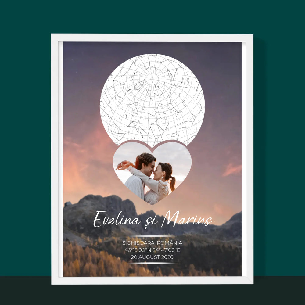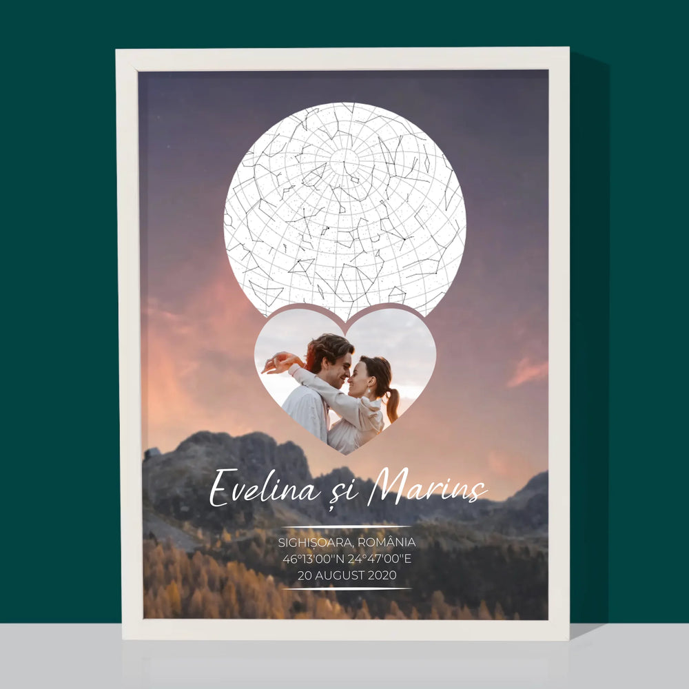 Harta Stelelor: Un Cuplu Îndrăgostit În Munți - Imprimare cu ramă 30x40 - verticală