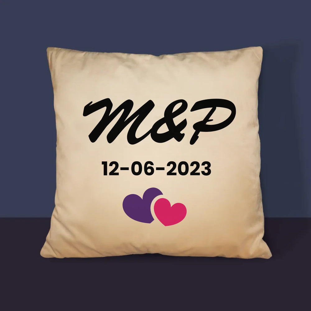 Monogramă: Inițiale Inimi - Pernă (Cu Fotografie)