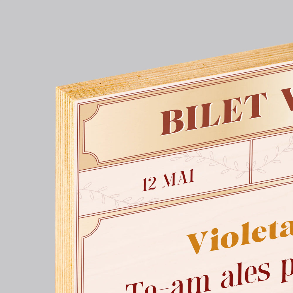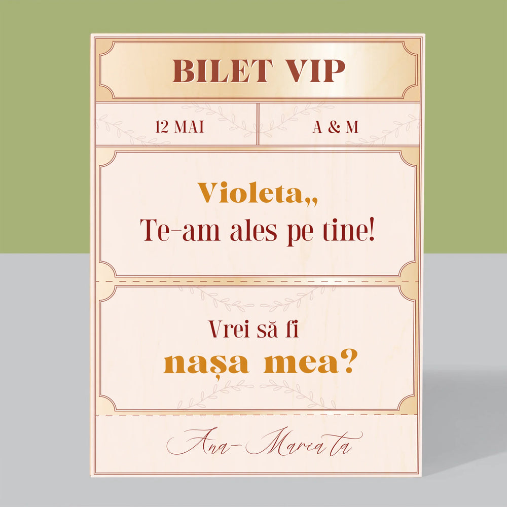 Numele Și Semnătura: Bilete Vip Nașă - Imprimare pe lemn - verticală