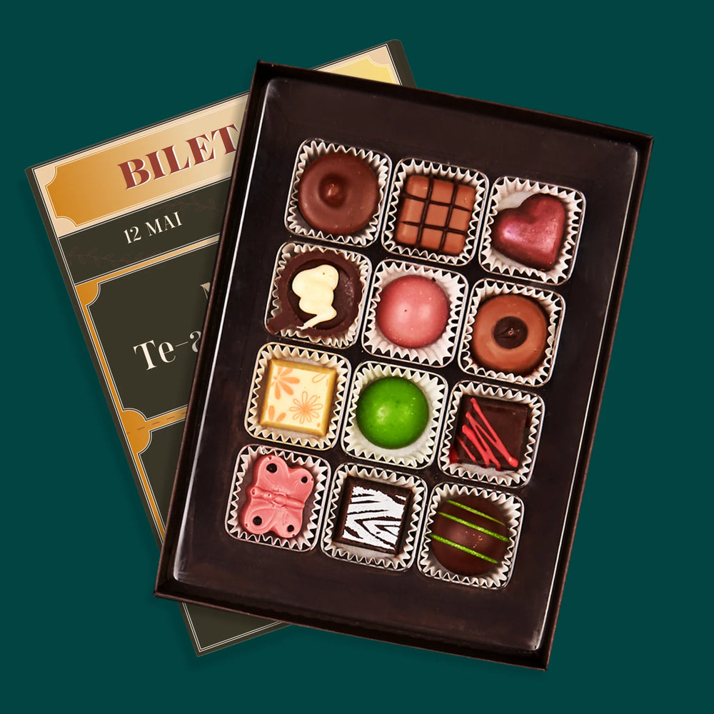Dimensiuni: 20x15x3,5 cm. Număr pralină: 12.