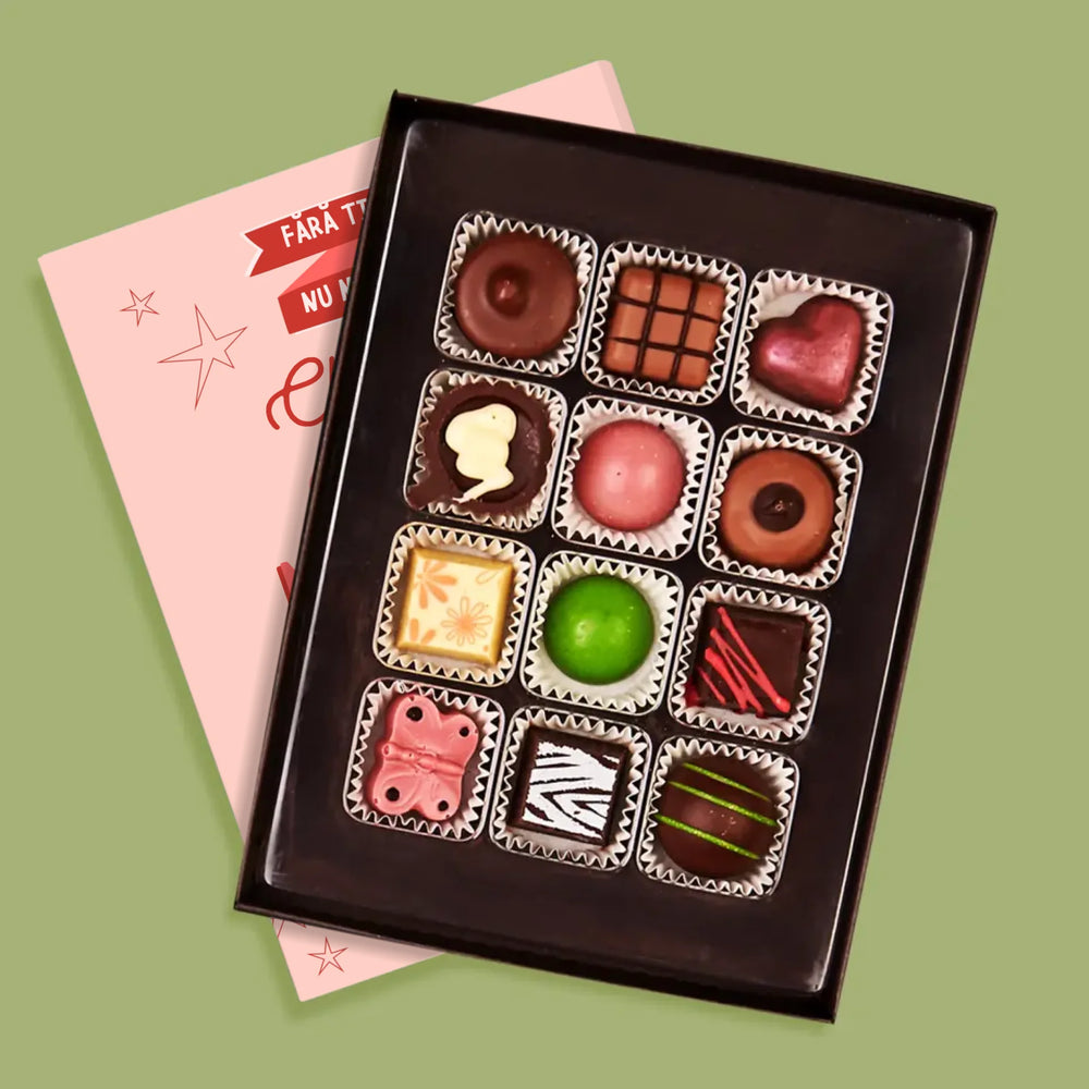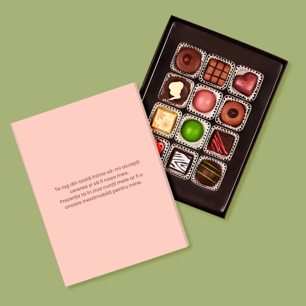 Dimensiuni: 20x15x3,5 cm. Număr pralină: 12.