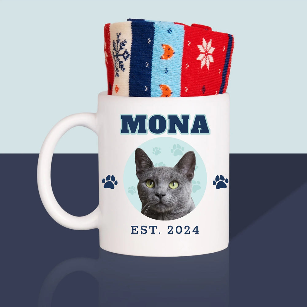 O cană de înaltă calitate cu personalizarea aleasă de tine și șosete în interior.