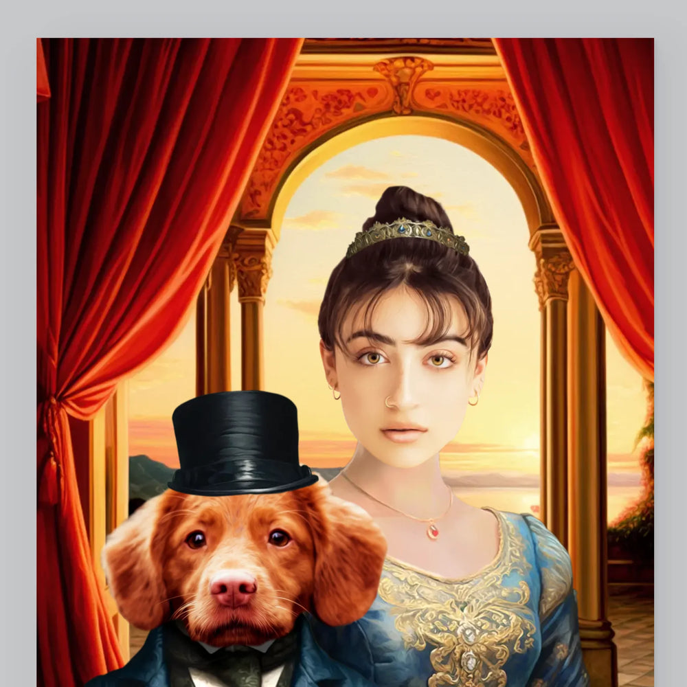 Portret Regal: Nobilă Cu Un Animal De Companie - Imprimare cu ramă 30x40 - verticală