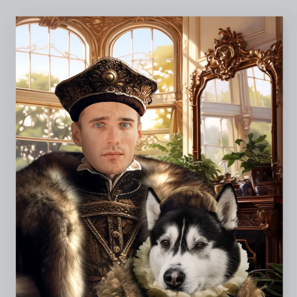 Portret Regal: Nobil Cu Un Animal De Companie - Tablou pe pânză - vertical