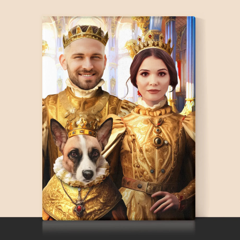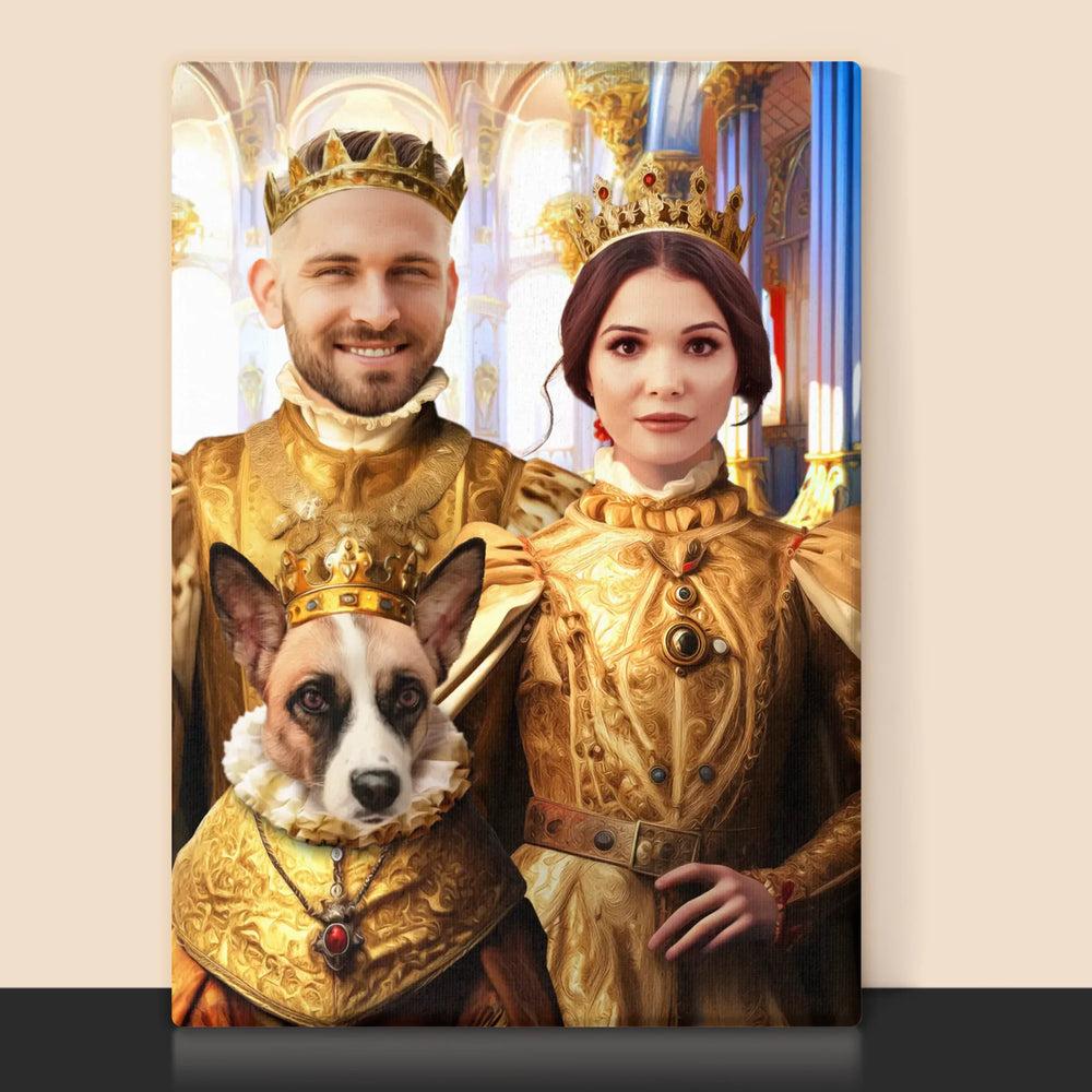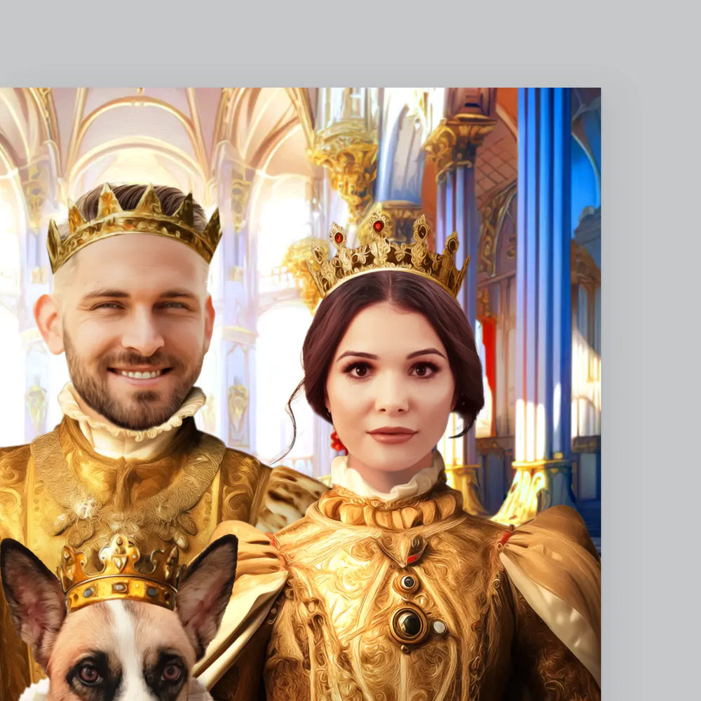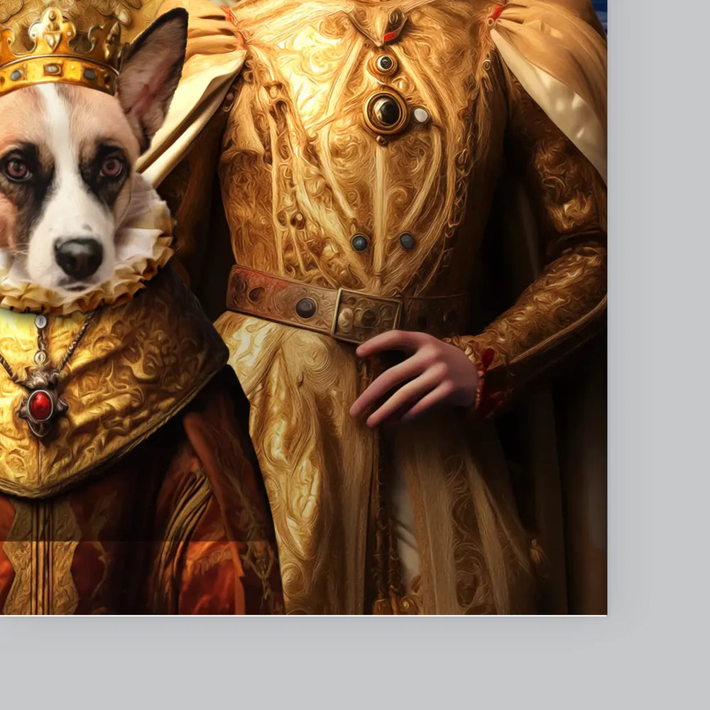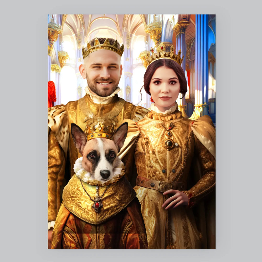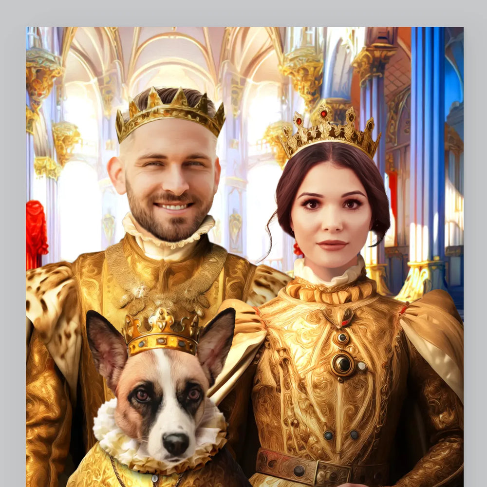 Portret Regal: Regele Și Regina Cu Animalul Lor De Companie - Imprimare cu ramă 30x40 - verticală