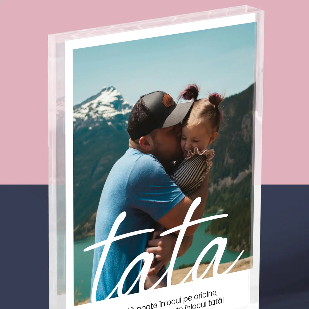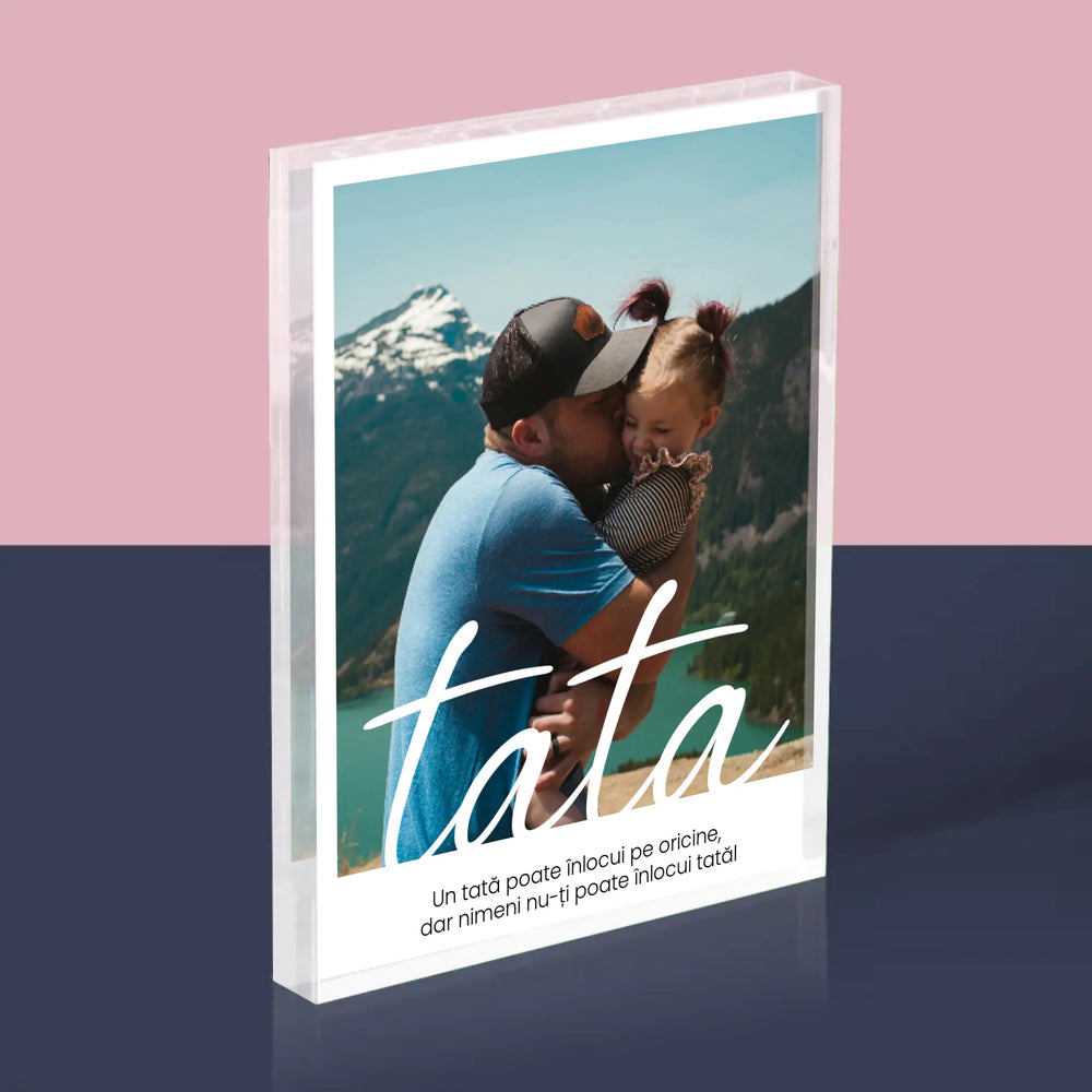 Fotografie și semnătură: Dedicație de neînlocuit pentru tată - Bloc acrilic - Vertical